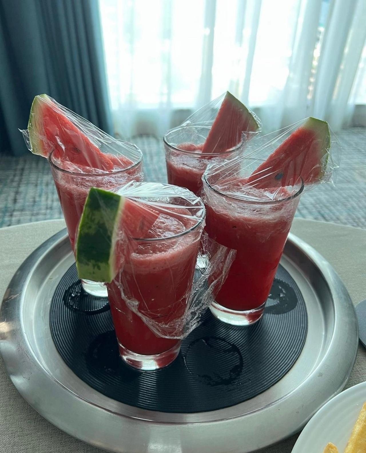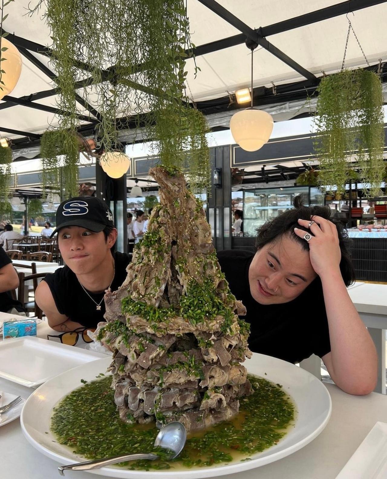 เเละภาพที่ทำให้อากาเซ่เห็นแล้วรู้สึกเอ็นดูศิลปินหนุ่ม คงเป็นภาพมาร์คที่เห็นต้มเล้งยักษ์อีกเมนูสุดแซ่บของเมืองไทย โดยเจ้าตัวทำหน้าสุดอึ้งกับเมนูจานนี้ เพราะมันทั้งสูงและใหญ่มากๆ นอกจากนี้ยังมีเมนูกะเพราไข่แดง 3 ฟอง และน้ำแตงโมปั่นเมนูสุดโปรดของหนุ่มมาร์คนั่นเอง