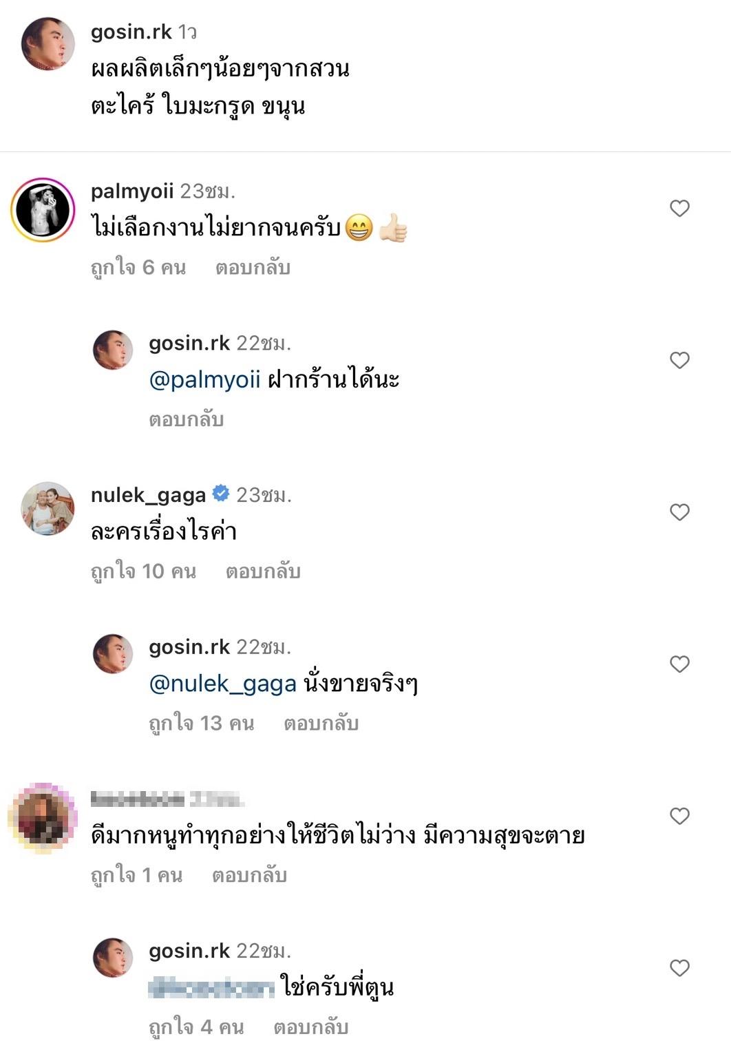 ที่ล่าสุด หนุ่มโก ได้โพสต์ภาพตัวเองผ่านอินสตาแกรมส่วนตัว เป็นภาพที่สวมเสื้อผ้าชิลๆ นั่งขายผลผลิตจากสวน โดยแบกระสอบขายนั่งบนพื้นดินเลย