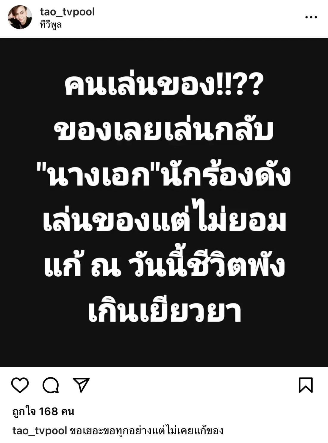 ซึ่งวงในอย่าง เต๋า ทีวีพูล ก็ได้โพสต์ข้อความเช้าวันนี้ (13 ก.ค. 2566) หลังนางเอก-นักร้องดัง ได้เล่นของแต่ไม่ยอมแก้ ณ ล่าสุดวันนี้ชีวิตพังยับ เกินเยียวยา