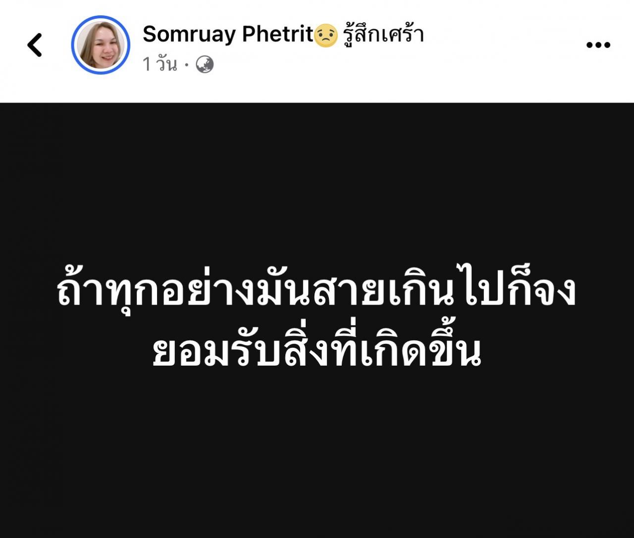 โดยทางด้านเฟซบุ๊กของ แม่เกตุ ได้โพสต์ตัดพ้อชีวิตเช่น “ทุกอย่างมันมีเวลาของมัน” “เป็นคนที่เข้มแข็งมาตลอดคืนนี้ขอร้องไห้สักคืน” เเละ “ถ้าทุกอย่างมันสายเกินไปก็จงยอมรับสิ่งที่เกิดขึ้น”