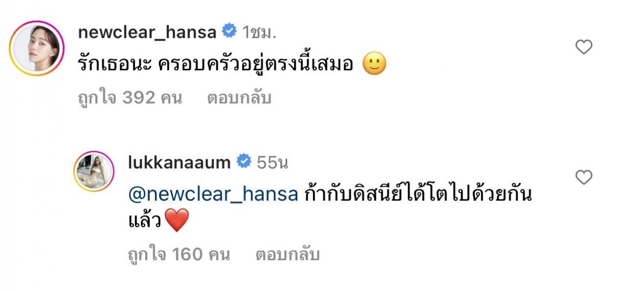 และจากโพสต์ดังกล่าวนั้น ทำให้น้องสาวอย่าง นิวเคลียร์ หรรษา เคลื่อนไหวแล้ว หลัง อุ้ม ลักขณา เปลี่ยนรอยสัก และประกาศแยกทางพ่อของลูก บอล กฤษณะ โดยเธอนั้นได้เข้ามาคอมเมนต์ว่า "รักเธอนะ ครอบครัวอยู่ตรงนี้เสมอ" ด้าน อุ้ม ลักขณา ได้มาคอมเมนต์กลับว่า "ก้ากับดิสนีย์ได้โตไปด้วยกันแล้ว".