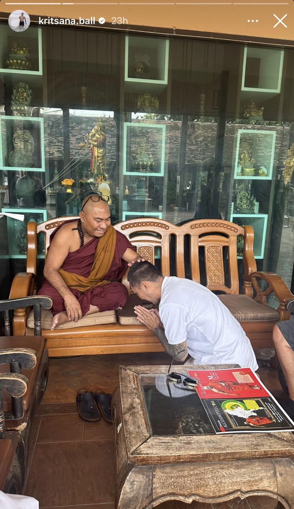 ต่อมาจากนั้น บอล กฤษณะ ก็โพสต์คลิปปลาในตู้กระจก พร้อมกับโพสต์คลิปไปที่วัดแห่งหนึ่ง ก่อนจะโพสต์ภาพไปไหว้พระที่วัดด้วยเช่นกัน.
