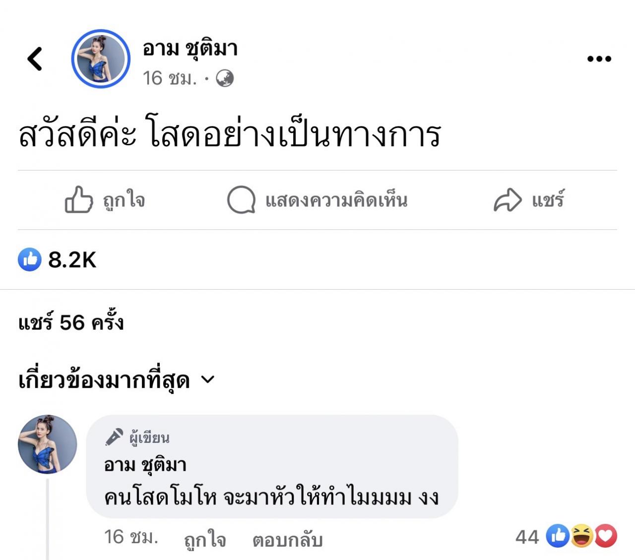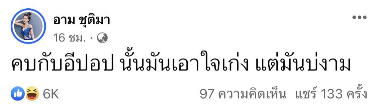 แต่ต้องบอกว่าล่าสุด อาม ชุติมา นักร้องดัง ได้ประกาศโสด หลังเปิดตัวแฟนหนุ่มดีกรีนักบอลได้เพียงไม่นาน โดยเธอนั้นได้โพสต์เฟซบุ๊กระบุข้อความว่า "สวัสดีค่ะ โสดอย่างเป็นทางการ" ก่อนจะโพสต์ต่อว่า "คบกับอีปอป นั้นมันเอาใจเก่ง แต่มันบ่งาม" ซึ่งงานนี้ไม่รู้ว่าเกิดอะไรขึ้น คงต้องรอฟังจากปากของเธอเอง.