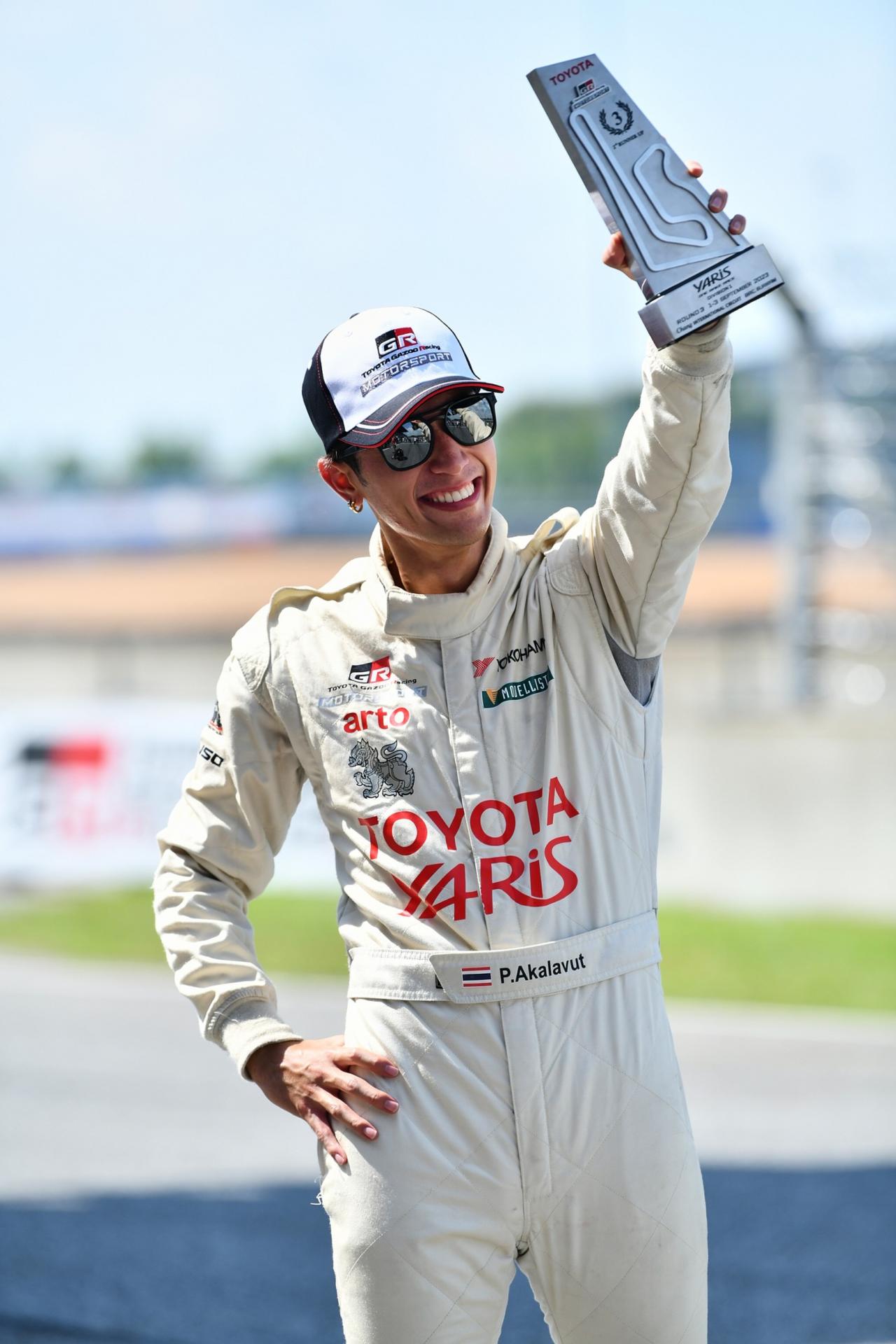 โดย “ปังปอนด์ อัครวุฒิ” ที่ควอลิฟายและได้สตาร์ตในลำดับ 9 ของรุ่น หลังออกตัวไล่แซงขึ้นมาจนอยู่ในกลุ่มหน้าก่อนเข้าสู่ในช่วงสองรอบสุดท้ายที่สามารถขึ้นมาอยู่ในอันดับ 1 ได้ ก่อนเสียจังหวะตกไปอยู่อันดับ 2 ปังปอนด์พยายามไล่แซงเพื่อขยับขึ้นไปในตำแหน่งเดิมแต่ถูกเบียดขึ้นไปอีกจบการแข่งขันเข้าเส้นชัยรับธงหมากรุกขึ้นโพเดีย ม รับถ้วยรางวัลรองชนะเลิศอันดับ 2 ในรุ่น ยาริส วันเมคเรซ