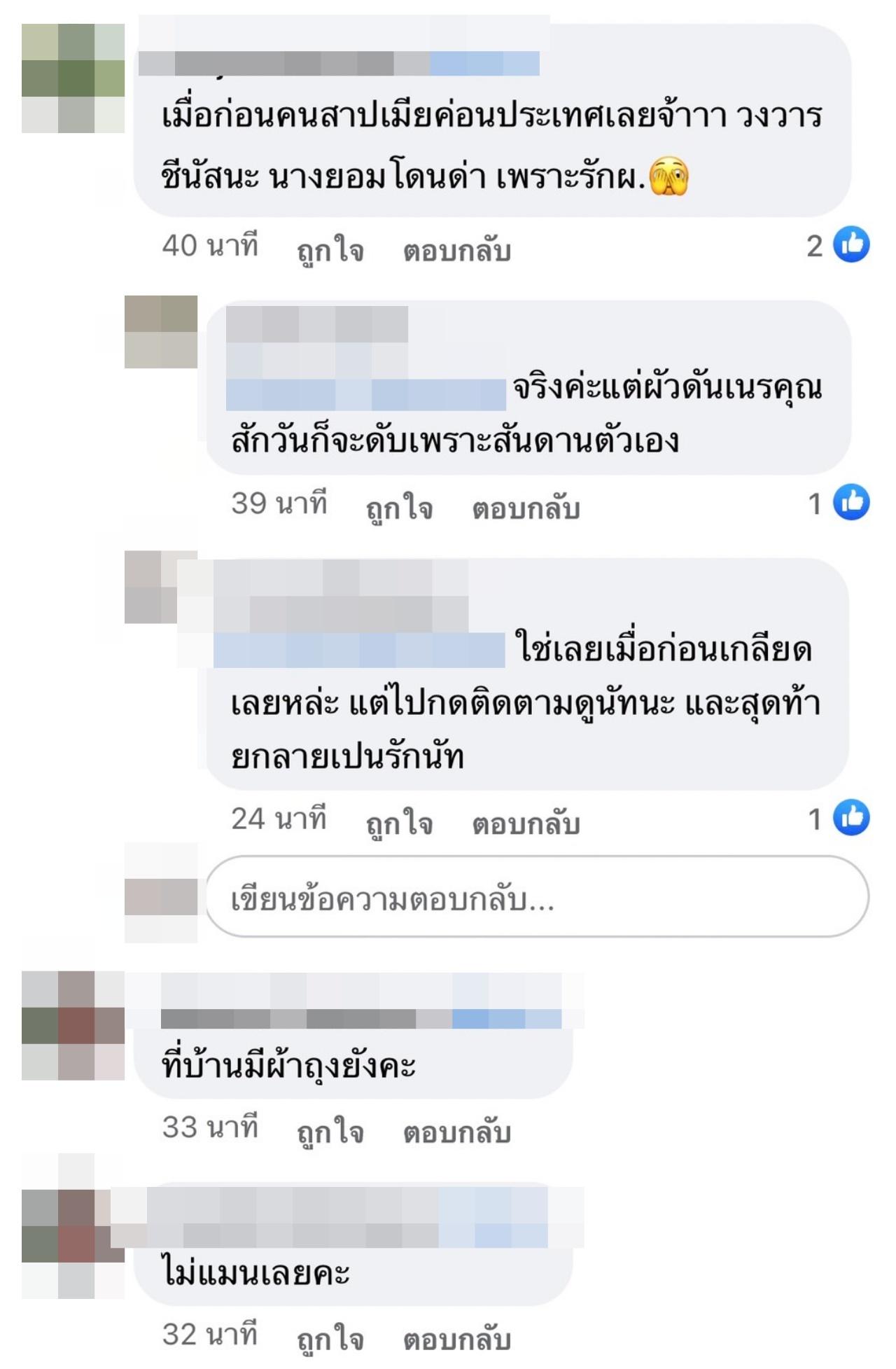 “รักสนุกก็อย่าหามีลูกมีเมีย สงสารเด็กที่ต้องมีพ่อเห็นแก่ตัวแบบนี้, มีคนดีๆ เข้ามาไม่ชอบ เขาปกป้องทุกอย่าง แต่ตอบแทนเขาด้วย...., ใครจะเอาไปเป็นผัวคิดดีๆ, เมียสวย หาเงินก็เก่ง หาที่ไหนได้ค่ะ โชคของคุณนัส ได้เริ่มต้นชีวิตใหม่ที่ดีนี้, ไปเอากระโปรงมาใส่เถอะ พอเลยเลิกฟังเลิกติดตาม เขายอมโดนคนด่าทั้งประเทศเพื่อมาให้ผู้ชายเฮงซวยทิ้ง ไม่สงสารเขาก็ควรสงสารลูก จิตสำนึกไม่มีเลย, เมื่อก่อนคนสาปเมียค่อนประเทศเลยจ้าาา วงวารชีนัสนะ นางยอมโดนด่า เพราะรักผ.”