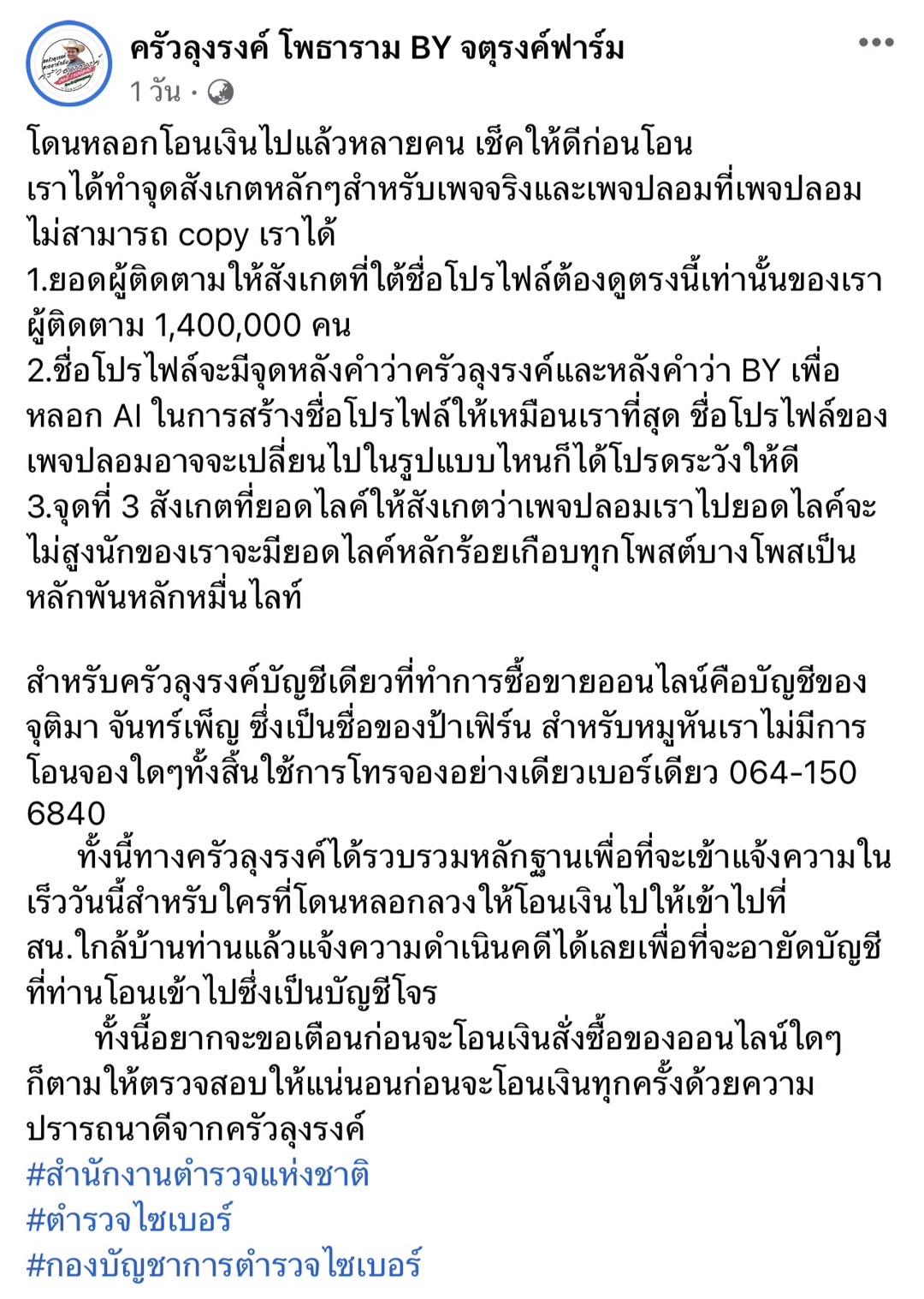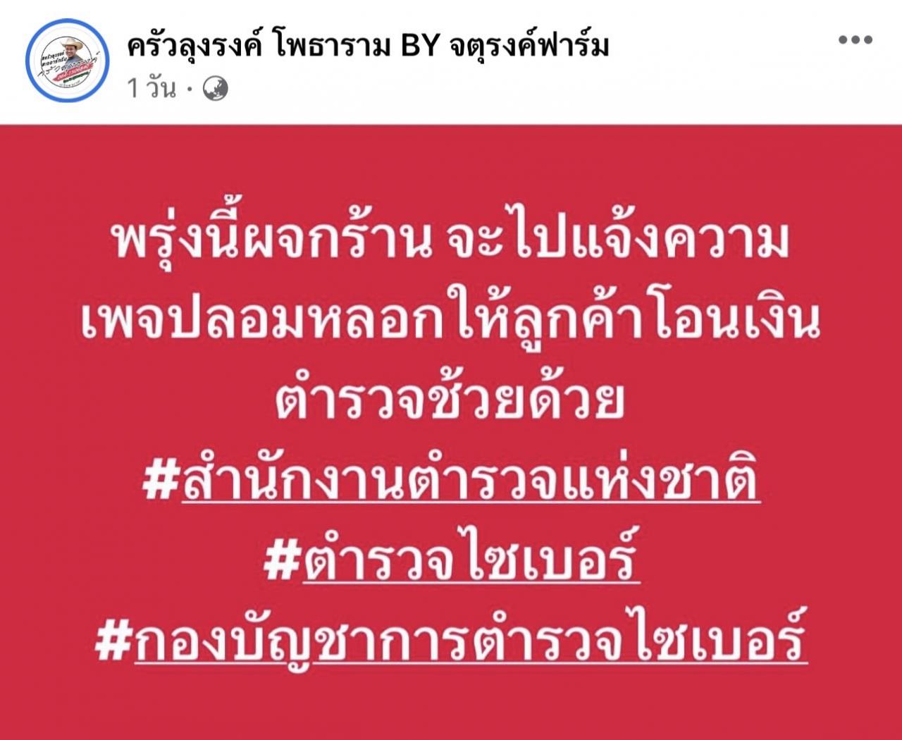 เกิดอาการหัวเสียขึ้นมาทันที สำหรับนักแสดงตลกชื่อดังอย่าง จตุรงค์ โพธาราม หลังทราบว่ามีลูกค้าหลายรายตกเป็นผู้เสียหาย เนื่องจากเผลอหลงเชื่อมิจฉาชีพแอบอ้างชื่อ ครัวลุงรงค์ ทำเพจเฟซบุ๊กปลอม เพื่อมาหลอกเหยื่อจองหมูหัน โดยให้โอนเงินค่ามัดจำก่อน คนละ 1,000 บาท