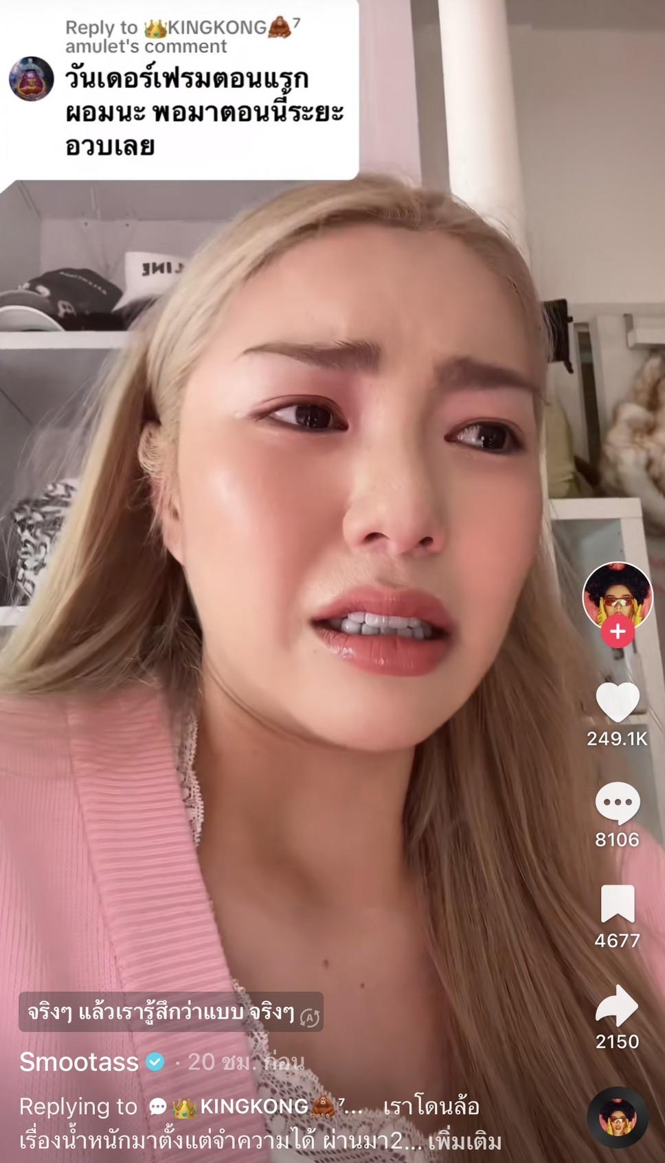 ล่าสุด เจ้าตัวได้ใช้พื้นที่บนช่องติ๊กต่อก @wonderframe อัดคลิประบายความในใจทั้งน้ำตา เกี่ยวกับคำวิจารณ์ดังกล่าว พร้อมกับระบุแคปชั่น "เราโดนล้อเรื่องน้ำหนักมาตั้งแต่จำความได้ ผ่านมา29ปี สังคมแห่งการบูลลี่นี้ไม่มีอะไรพัฒนาเลย คนพิมพ์แปปเดียวก็ลืม แต่คนที่โดนอะไม่เคยลืมเลย"