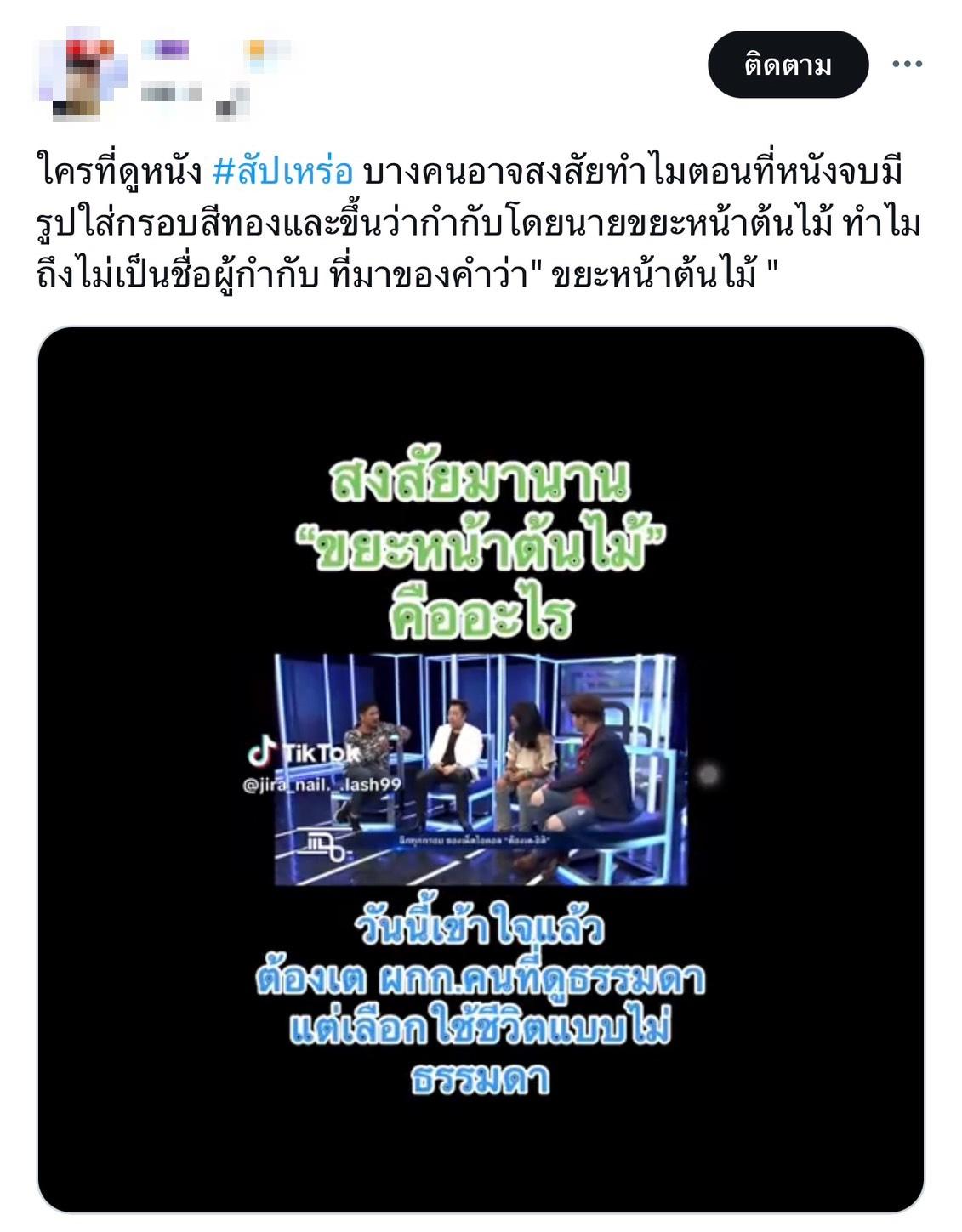 ทำเอาแฟนคลับที่เป็นคอหนังเรื่อง สัปเหร่อ ต่างพากันสงสัยว่าทำไมตอนที่หนังเรื่องนี้จบ ถึงมีรูปใส่กรอบสีทอง และขึ้นว่ากำกับโดย "นายขยะหน้าต้นไม้" ทำไมถึงไม่เป็นชื่อผู้กำกับ ต้องเต ธิติ ศรีนวล
