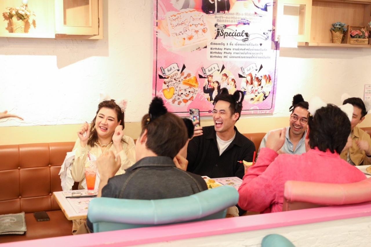 เท่านั้นยังไม่พอ เฮียบอยขอพาแก๊งพี่ๆ พิธีกรตีท้ายครัว ไปดื่มด่ำกันที่เมดคาเฟ่ ด้วยบรรยากาศประหนึ่งเหมือนอยู่ญี่ปุ่นเลยทีเดียว เรียกได้ว่า 4 พิธีกร ถูกอกถูกใจจนหายใจออกมาเป็นคาวาอี้