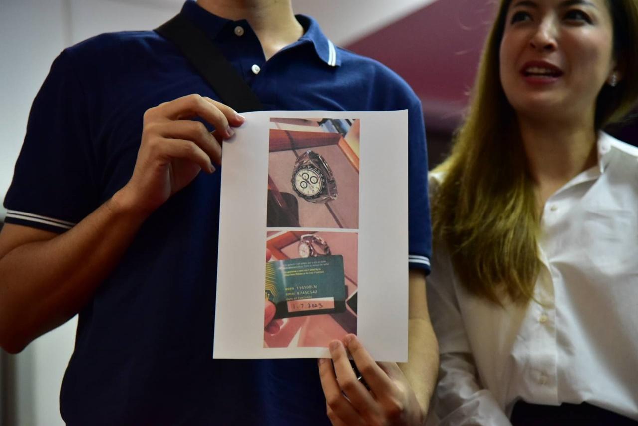 หลังจากนั้นช่วงต้นเดือนตุลาคมที่ผ่านมา ตนกับฝั่งผู้ขายจึงได้นัดหมายที่จะมาดูนาฬิกาที่เซ็นทรัลเวิลด์ ซึ่งทางฝั่งผู้ขายอ้างว่า เนื่องจากไม่สามารถพูดภาษาไทยได้ เลยจะส่งตัวแทนนำนาฬิกามาให้ดู เมื่อมาถึงตามที่นัดหมาย ตนก็ได้พบกับคนที่นำนาฬิกามาให้ ซึ่งภายหลังทราบว่าเป็นเจ้าของนาฬิกาตัวจริง