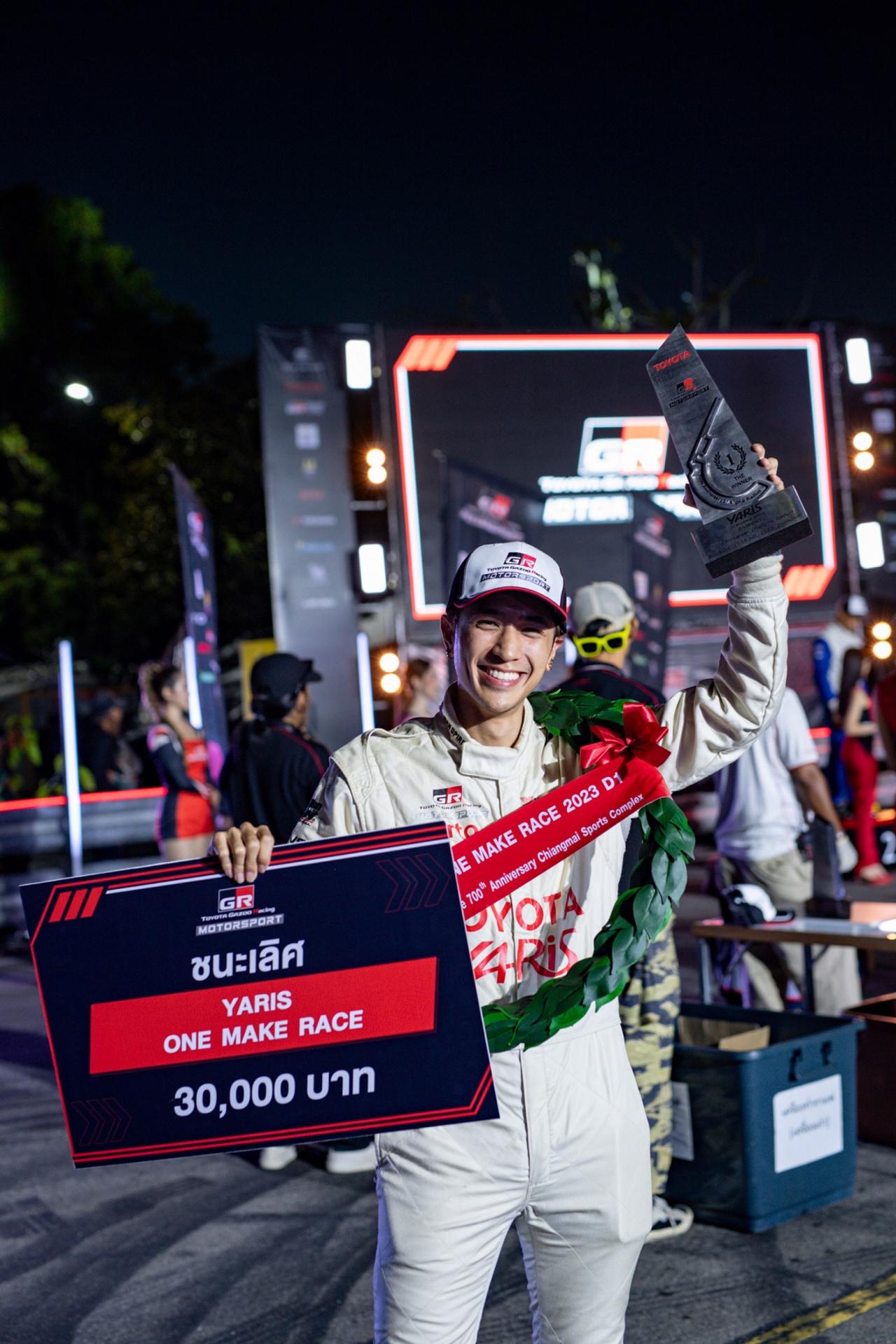 โดย ปังปอนด์ ออกสตาร์ตในหัวแถวของรุ่น ยาริส วันเมคเรซ โดยมีกลุ่มผู้ตามฝีมือสุดจี๊ดอย่าง หนุ่ม ‘โรเตอร์ ทองเจือ’ ไล่บี้ตามหลัง และขบวนกลุ่มผู้ตามอีกหลายสิบคัน ก่อนสปีดทิ้งห่างคันอื่นๆ ขึ้นมาเป็นคู่หน้าดวลฝีมือเบียดกันโค้งแล้วโค้งเล่าก่อนสุดท้าย ปังปอนด์อาศัยฝีมือและความเก๋ามากกว่าเข้าธงหมากรุกไปก่อน คว้าถ้วยแชมป์อันดับ 1 ในรุ่นยาริส วันเมคเรซประจำสนามเชียงใหม่ไปครอง