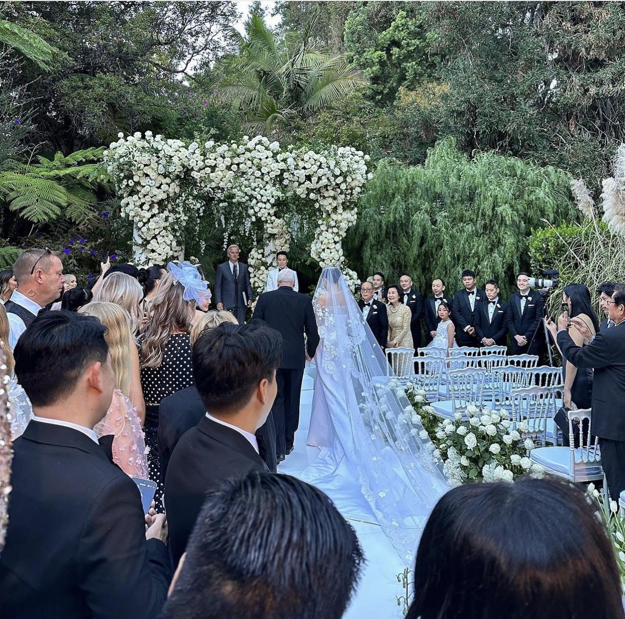 ถึงแม้งานนี้จะจัดแบบ Outdoor ในสวนและมีเพียงแขกคนสนิทเท่านั้น แต่ก็มีการตกแต่งอย่างงดงามราวกับเทพนิยาย ในส่วนของชุดเจ้าสาวสำหรับช่วงพิธีการนั้นออกแบบโดย Valentino Couture