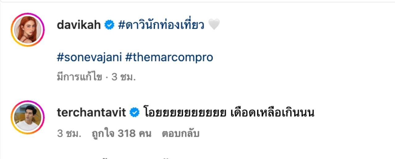 หลังจากที่ห่างหายการอวดภาพในชุดบิกินีไปพักใหญ่ ล่าสุดนางเอกสาว ใหม่ ดาวิกา โฮร์เน่ ก็ทำให้อุณหภูมิของประเทศไทยเดือดปุดๆ กับภาพชุดและคลิปที่เจ้าตัวใส่บิกินีตัวจิ๋วอวดหุ่นผอมไร้ไขมัน และผิวขาวออร่ากระแทกตาให้แฟนๆ ได้ชมกัน