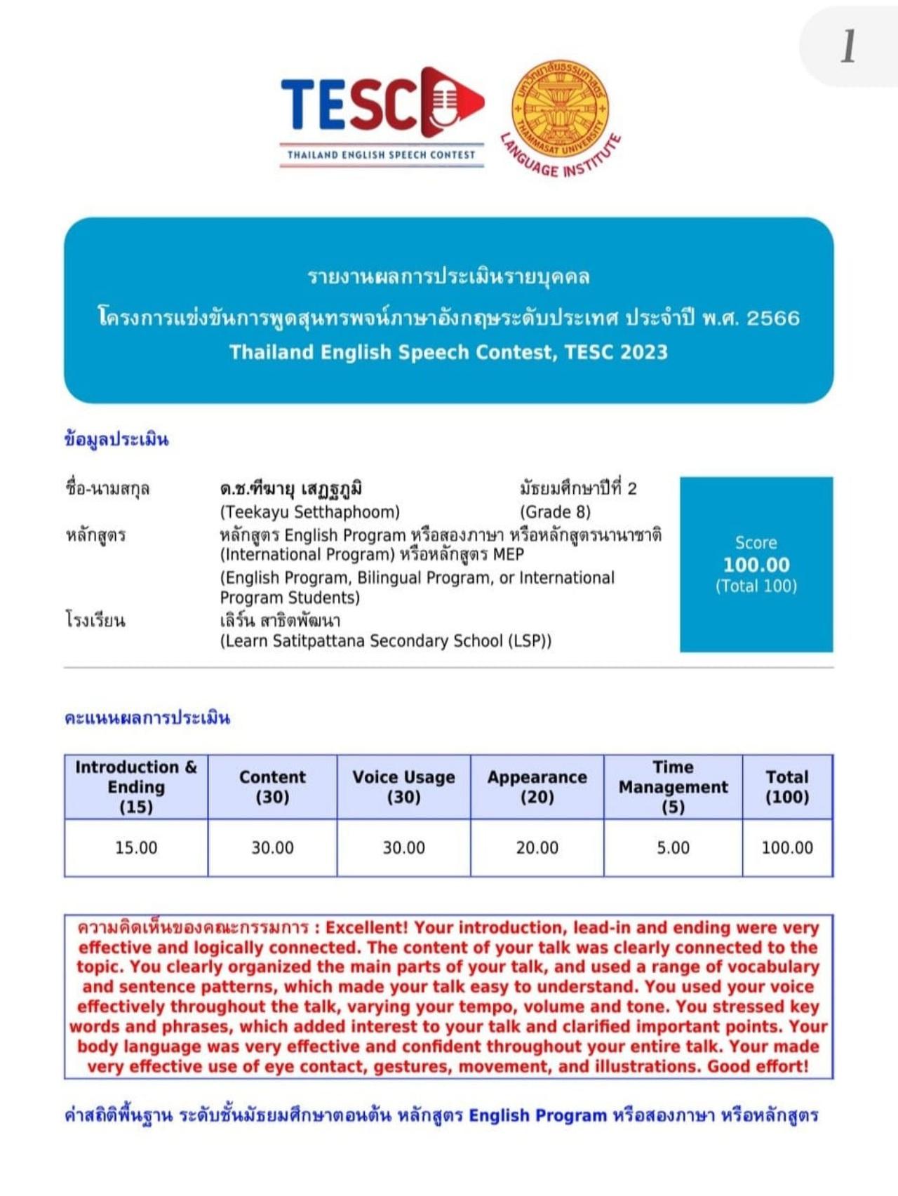 "#อันดับ1ของประเทศและอันดับ1ของภาคด้วยคะแนน100เต็ม100 #รับถ้วยรางวัลและเหรียญทองใบประกาศจากท่านชัชชาติ โครงการ TESC Thailand English Speech contest จากคณะกรรมการผู้ทรงคุณวุฒิ จากมหาวิทยาลัยธรรมศาสตร์