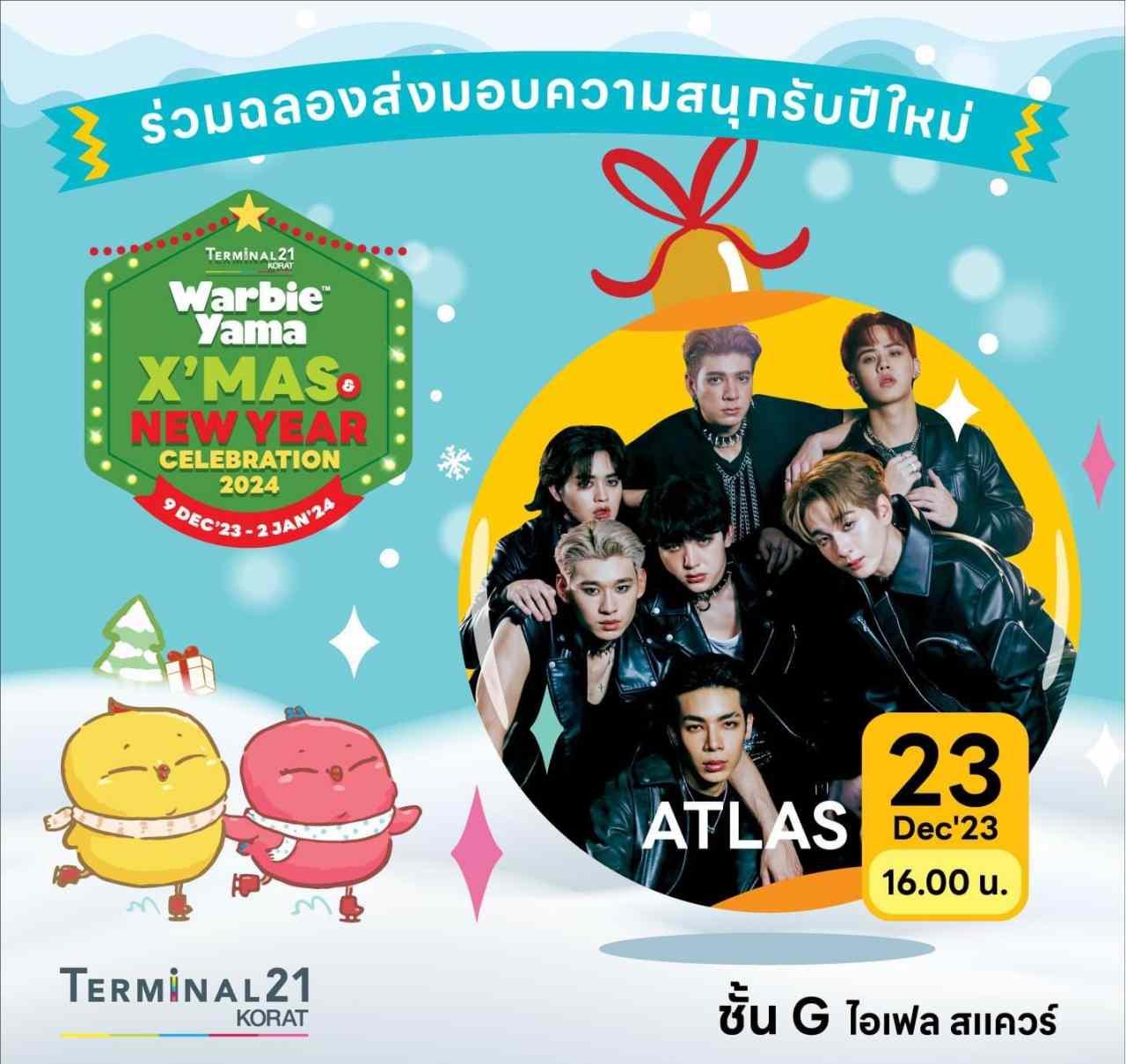 เทศกาลแห่งความสุขส่งท้ายปีครั้งนี้ ศูนย์กาารค้าเทอร์มินอล 21 โคราช เนรมิตโซนบ่อบอลขนาดใหญ่กว่าแสนลูก และโซนตกแต่งหิมะจำลอง ที่เต็มไปด้วยงานศิลปะ ภาพวาดระบายสี ระบายสีปูนโปสเตอร์ สำหรับน้องๆ หนูๆ พร้อมฟินไปกับเครื่องดื่มเมนูพิเศษที่คิดค้นมาเพื่องานนี้งานเดียว และพิเศษสุดกับโปรโมชันสินค้าลิขสิทธิ์สุดน่ารัก ตั้งแต่วันนี้ - 2 ม.ค. 2567 พบกันที่ ชั้น G-PARIS เทอร์มินอล 21 โคราช เท่านั้น ที่สำคัญ วอร์มเสียงกรี๊ดกันมาให้เต็มที่ เตรียมพบกับขบวนศิลปินสุดปัง ที่จะตบเท้ามาร่วมมอบความมันสนั่นเวที วันที่ 23 ธ.ค. เวลา 16.00 น. พบกับ 7 หนุ่มบอยแบนด์ ATLAS, วันที่ 24 ธ.ค. เวลา 16.00 น. พบกับ ส้ม มารี และวันที่ 30 ธ.ค. เวลา 16.00 น. พบกับสองหนุ่ม หยิ่น-วอร์ ความสนุกสุดพิเศษส่งท้ายปีฟินๆ ครั้งนี้ รอทุกคนมาร่วมมันไปพร้อมกัน.