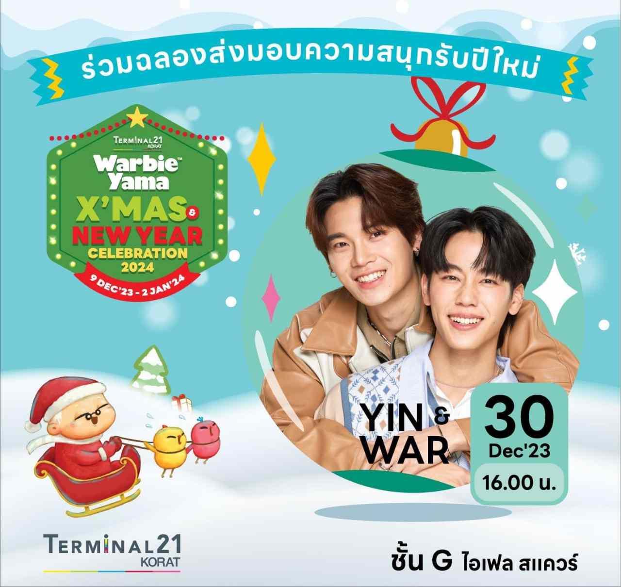 เตรียมพบกับปรากฏการณ์ความสุขส่งท้ายปีครั้งยิ่งใหญ่ ศูนย์การค้าเทอร์มินอล 21 โคราช พาเจ้านกจอมกวน “วอร์บี้ ยามะ” ซึ่งเป็นสติกเกอร์ LINE ยอดนิยม มาร่วมฉลอง ส่งมอบความสุขส่งท้ายปีเต็มรูปแบบครั้งแรกในงาน “Warbie Yama X’MAS & NEW YEAR CELEBRATION 2024” (วอร์บี้ ยามะ คริสต์มาส แอนด์ นิวเยียร์ เซเลเบรชั่น 2024) ภายใต้บรรยากาศ New Year Celebration โดยมี ปพิชญา ณ นครพนม ผู้อำนวยการศูนย์การค้าเทอร์มินอล 21 โคราช และ อณิตา ตันตสิรินทร์ กรรมการผู้จัดการ บริษัท อาร์วามะ จำกัด พร้อมด้วย ฐิตารีย์ บุญธรรมสามิสร ผู้จัดการส่วนงานการตลาด ศูนย์การค้าเทอร์มินอล 21 โคราช, สุวีรยา อังศวานนท์ ผู้ช่วยกรรมการผู้จัดการสายงานบริหารคู่ค้าและสื่อสารองค์กร บริษัท ที.เอ.ซี. คอนซูเมอร์ จำกัด (มหาชน) ร่วมเปิดงาน