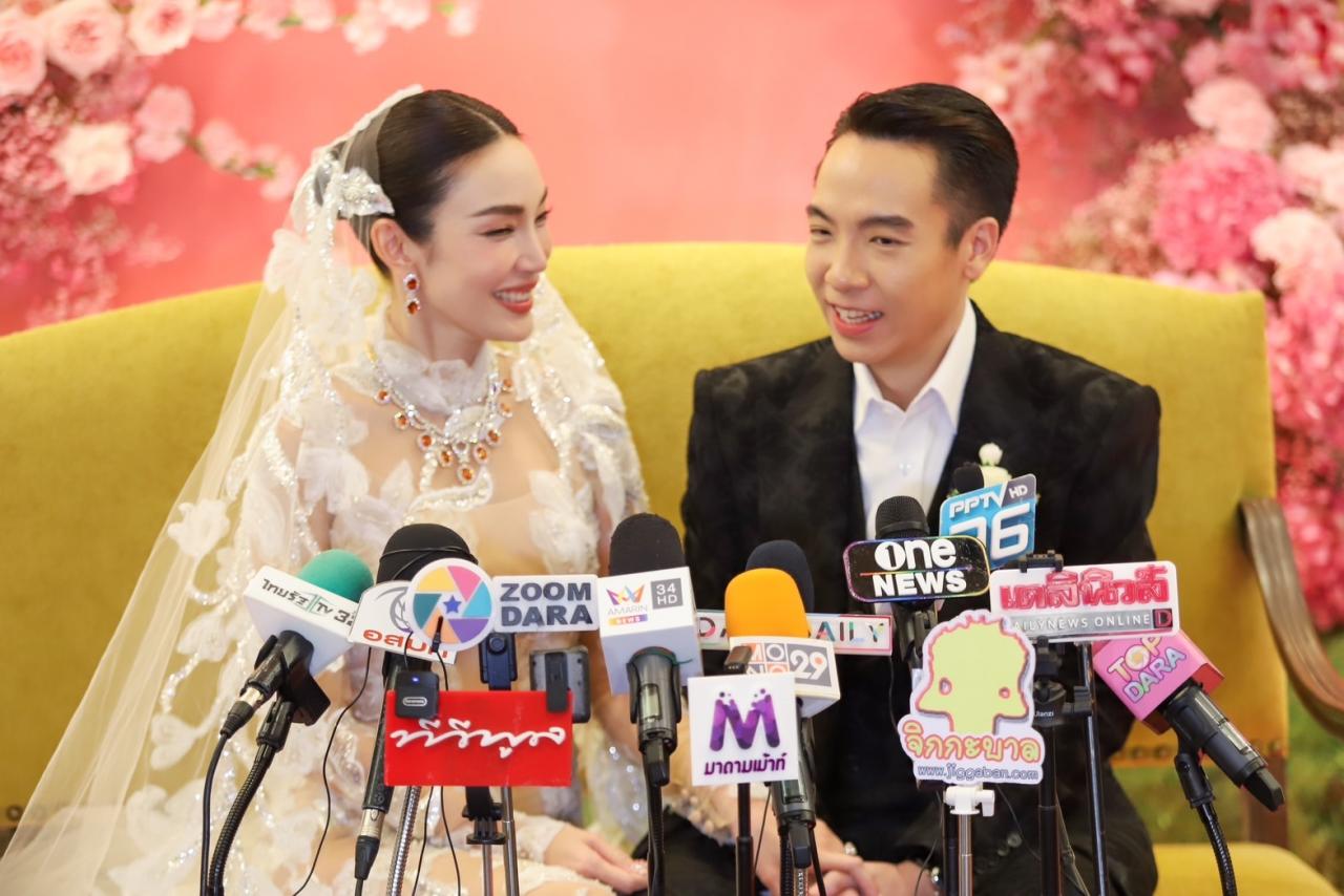 โดยช่วงบ่ายบ่าวสาวป้ายแดง เมย์ พิชญ์นาฏ ได้ควง ไฮโซบิ๊ก มาให้สัมภาษณ์กับสื่อมวลชนที่มาแสดงความยินดี ณ โรงแรมแกรนด์ ไฮแอท เอราวัณ กรุงเทพฯ พร้อมกับเปิดใจถึงวันสำคัญของทั้งคู่