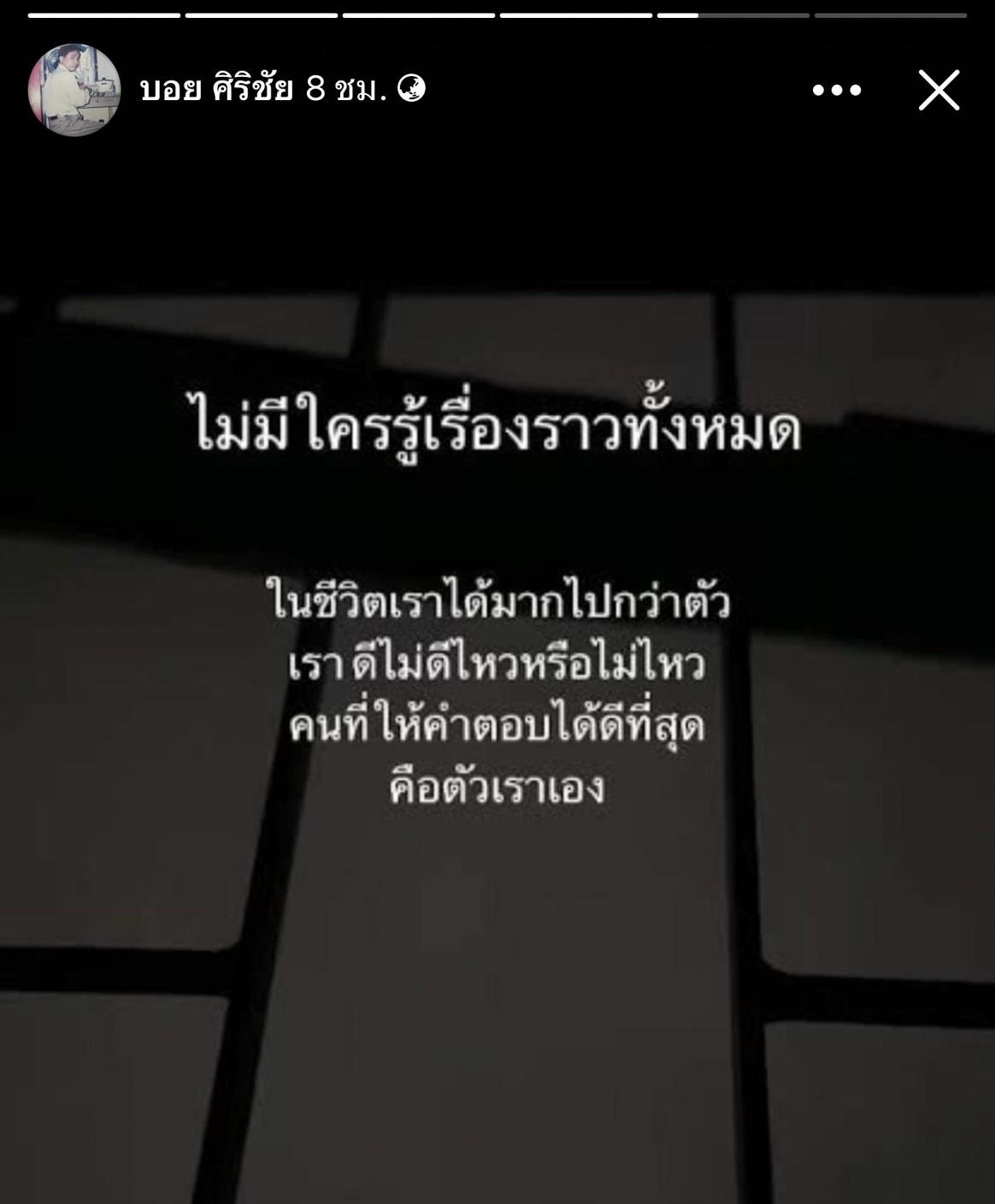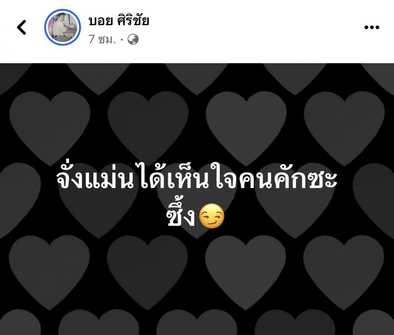 ในขณะที่ หนุ่มบอย ได้โพสต์เฟซบุ๊ก ระบุข้อความบอกว่า "จั่งแม่นได้เห็นใจคนคักซะ ซึ้ง" และแชร์โพสต์เรื่องชีวิตคู่เหมือนกับสาวแอน แชร์โปรไฟล์ใหม่สาวแอนด้วย