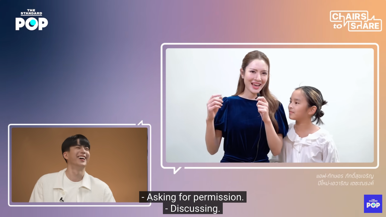 มันยังให้แรงบันดาลใจกับอีกหลายคน แค่มองหน้าพี่แอฟก็รู้แล้วว่าพี่เขาเป็นผู้หญิงที่เต็มไปด้วยความรักจริงๆ เรารู้สีกโชคดีมากๆ ที่ได้รู้จัก ได้อยู่ในสถานะนี้กับพี่เขา