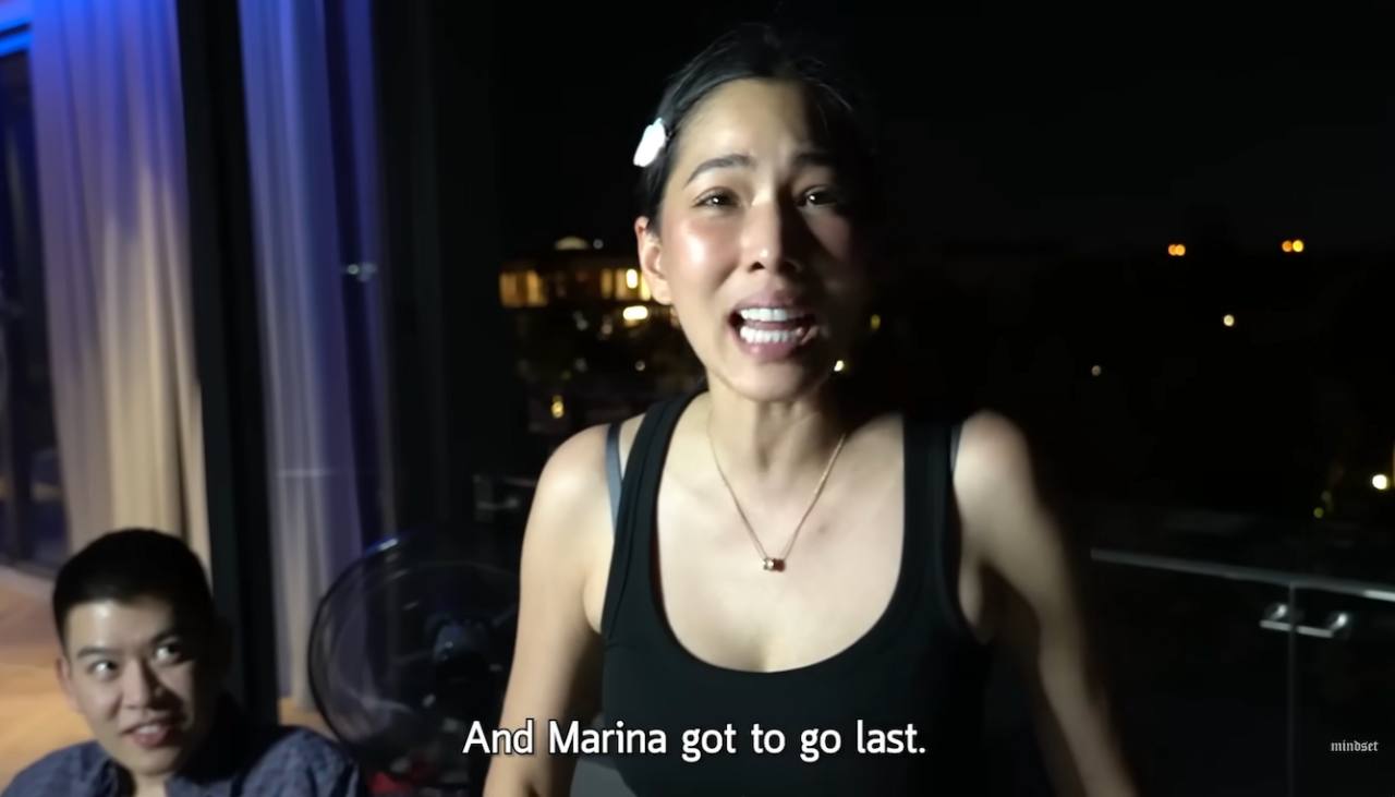 แล้วสรุปฉันโชคดี ฉันยิงฉุบชนะมารีน่า น้องได้คนสุดท้าย พอแปะเสร็จมันจับเวลา 15 นาที แล้วก็เอามาสก์ออก ซึ่งแพงยังโชคดี พลิกหน้ามาสก์อีกด้าน แต่คนที่ซวยคือมารีน่า เพราะได้มาสก์เป็นคนที่ 3