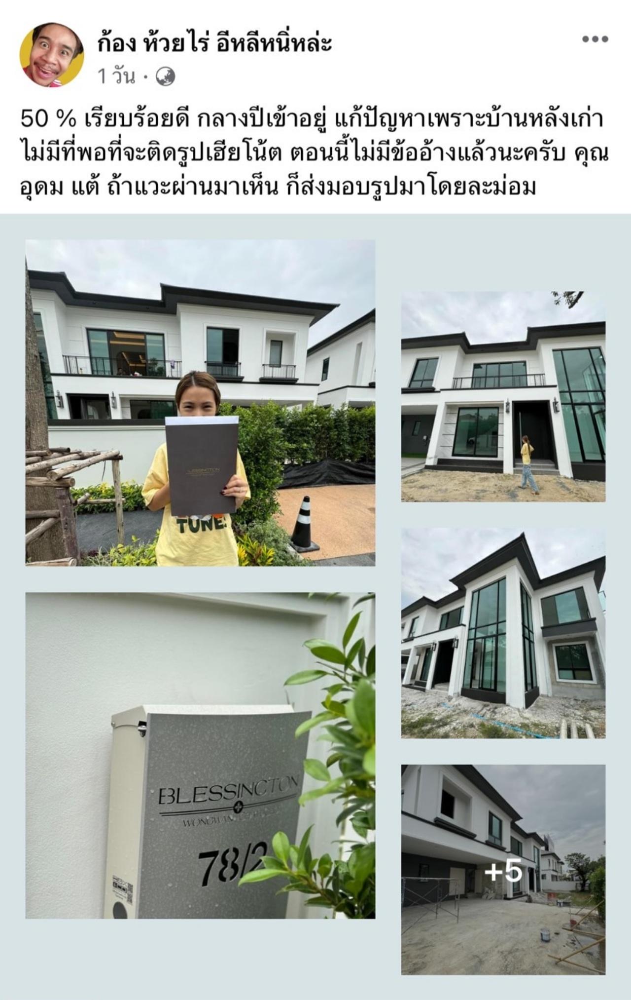 ต้องบอกเลยว่าปีนี้เป็นปีทองของ ก้อง ห้วยไร่ เลยจริงๆ ไม่ว่าจะหยิบทำอะไรก็ปังไปซะหมด อีกทั้งธุรกิจที่ทำกำลังไปได้สวยเลยทีเดียว ล่าสุด ก้อง ได้เผยภาพบ้านหลังใหม่ ที่กำลังอยู่ในช่วงก่อสร้าง ซึ่งใกล้จะเสร็จแล้ว เหลืออีก 50% คาดว่ากลางปีหน้าเข้าอยู่ได้ พร้อมกับเผยเหตุผลที่ซื้อบ้านหลังใหม่ว่า ซื้อเพราะบ้านหลังเก่าไม่มีที่จะติดรูปของ โน้ต อุดม แล้ว เลยซื้อใหม่ซะเลย