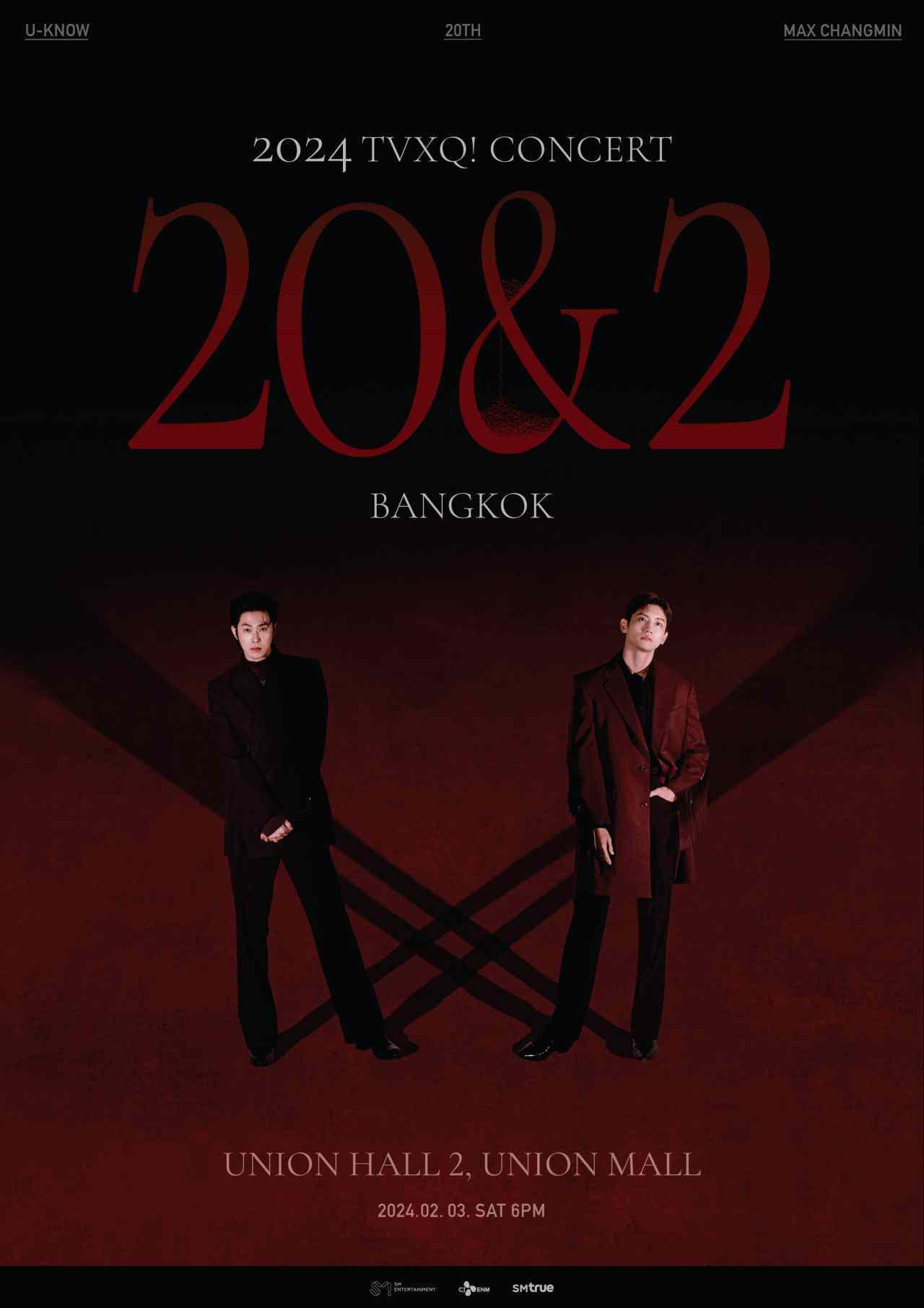 SM True (เอสเอ็ม ทรู) ร่วมเฉลิมฉลองการครบรอบเดบิวต์ 20 ปีของ TVXQ! (ทงบังชินกิ) วงที่ได้รับการขนานนามอย่างสมเกียรติในฐานะ ‘ตำนานตลอดกาลแห่งเค-ป๊อป’ โดย ‘U-KNOW’ (ยูโนว์) และ ‘'MAX CHANGMIN’ (แม็กซ์ ชางมิน) 2 สมาชิกแห่ง TVXQ! จะร่วมกันแสดงความสมบูรณ์แบบอย่างเหนือชั้น พร้อมมอบความทรงจำที่เปี่ยมล้นด้วยความหมายและความสุข ในคอนเสิร์ตเต็มรูปแบบที่ประเทศไทย 2024 TVXQ! CONCERT [20&2] IN BANGKOK (ทูเธาซันด์ทเวนตี้โฟร์ ทงบังชินกิ คอนเสิร์ต [ทเวนตี้แอนด์ทู] อิน แบงค็อก) วันเสาร์ที่ 3 กุมภาพันธ์ 2567 เวลา 18.00 น. ณ ยูเนี่ยน ฮออล์ 2