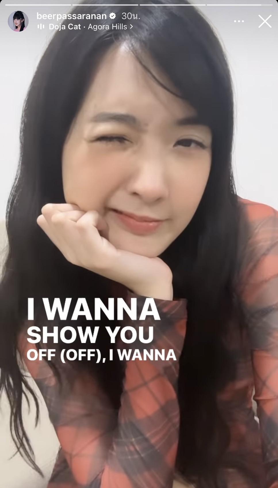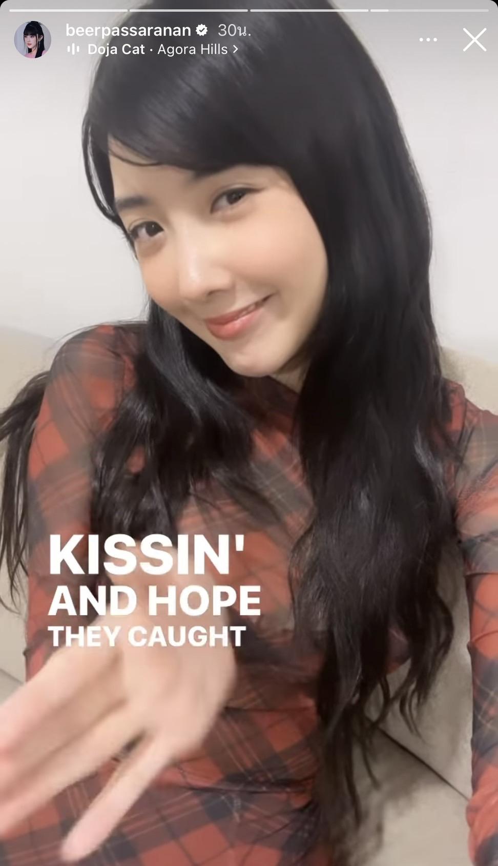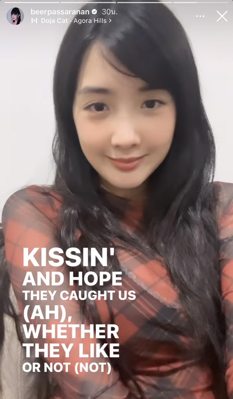 โดยโพสต์ลงสตอรี่ไอจีเพลง Agora Hills - Doja Cat แปลได้ว่า "แอบจูบกัน แล้วฉันอยากให้คนอื่นจับได้ ใครจะชอบไม่ชอบก็เรื่องของเขาเถอะ ก็เขาอยากอวดเธออ่ะ อยากอวดจะทำไม"