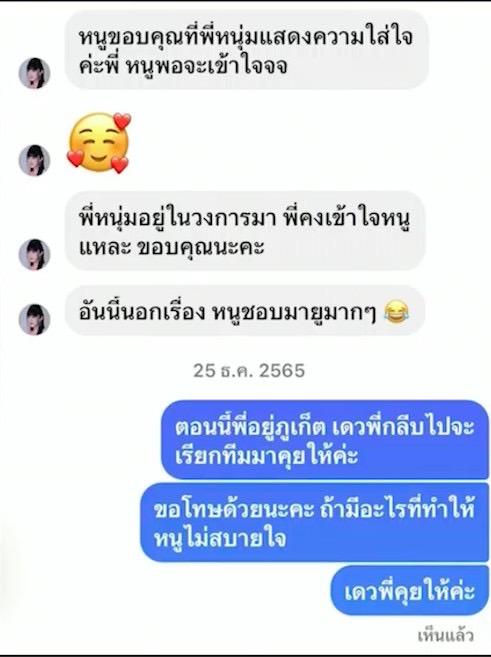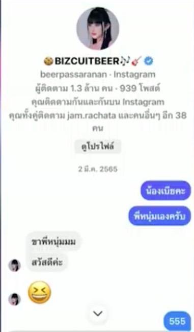งานนี้ หนุ่ม กรรชัย ยังได้เปิดแชต ที่ไดเร็กทักคุยกับ สาวเบียร์ ถึงเรื่องต่างๆ เริ่มต้นจากการติดต่อพูดคุยเรื่องงาน ที่ชักชวนมารีวิวสินค้า ตามด้วยแชตที่ถูกกระแสโซเชียลพูดถึงในตอนนี้ กับแชตข้อความ "น่ารักมากค่ะ" ปิดท้ายด้วยการปรึกษาถึงเรื่องดราม่าในวันคริสต์มาส ปมแย่งแฟนเพื่อนนั่นเอง.