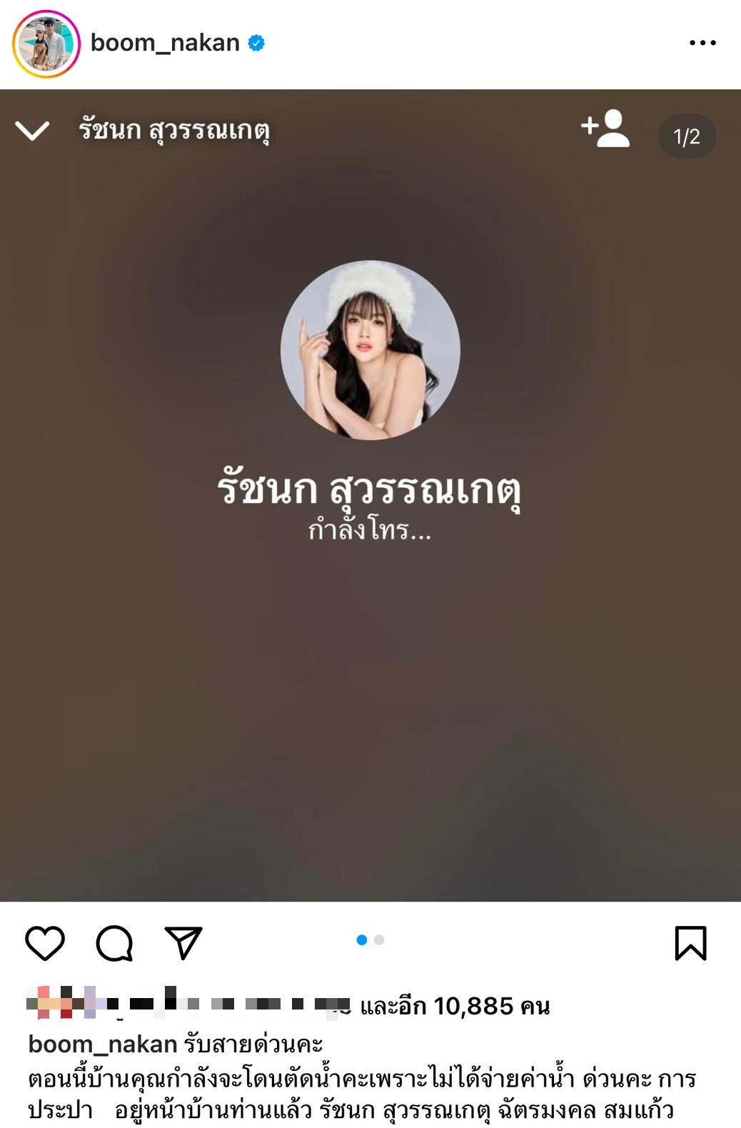 โดยเจ้าตัวได้โพสต์ว่า "รับสายด่วนค่ะ ตอนนี้บ้านคุณกำลังจะโดนตัดน้ำค่ะ เพราะไม่ได้จ่ายค่าน้ำ ด่วนค่ะ การประปา อยู่หน้าบ้านท่านแล้ว รัชนก สุวรรณเกตุ ฉัตรมงคล สมแก้ว"