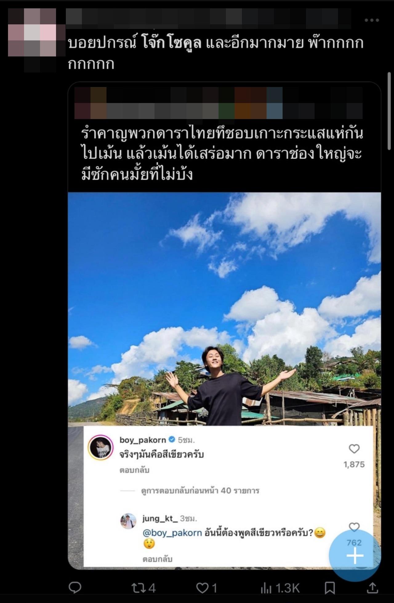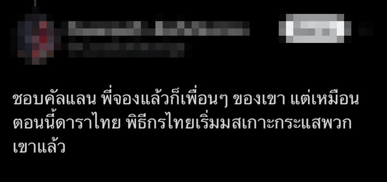 โดยมีผู้ใช้ X (ทวิตเตอร์) รายหนึ่งทวีตข้อความว่า “รำคาญพวกดาราไทยที่ชอบเกาะกระแสแห่กันไปเมนต์แล้วเมนต์ได้สะเหล่อมาก ดาราช่องใหญ่จะมีสักคนมั้ยที่ไม่บ้ง”