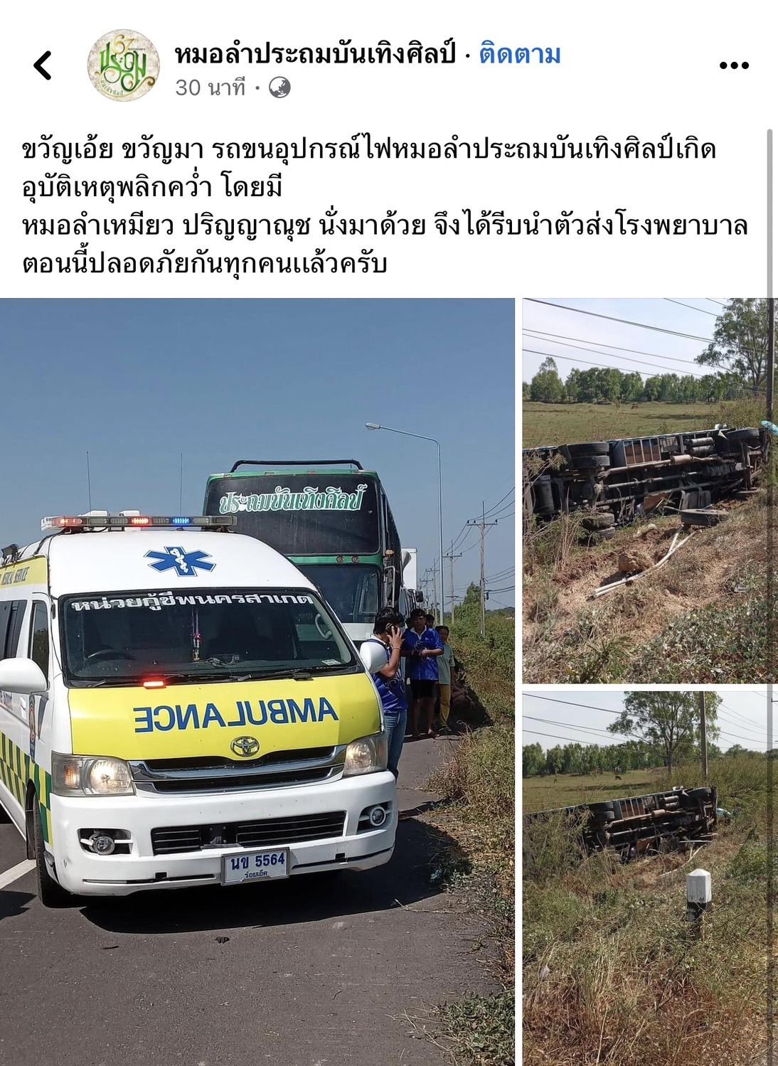 ทำเอาแฟนคลับหลายคนถึงกับใจหาย และอดเป็นห่วงไม่ได้ เมื่อล่าสุด เพจเฟซบุ๊ก หมอลำประถมบันเทิงศิลป์ ได้ออกมาแจ้งข่าวการเกิดอุบัติเหตุรถคว่ำของทีมงานในคณะ และในรถยังมีหมอลำเหมียว ปริญญาณุช นั่งมาด้วย