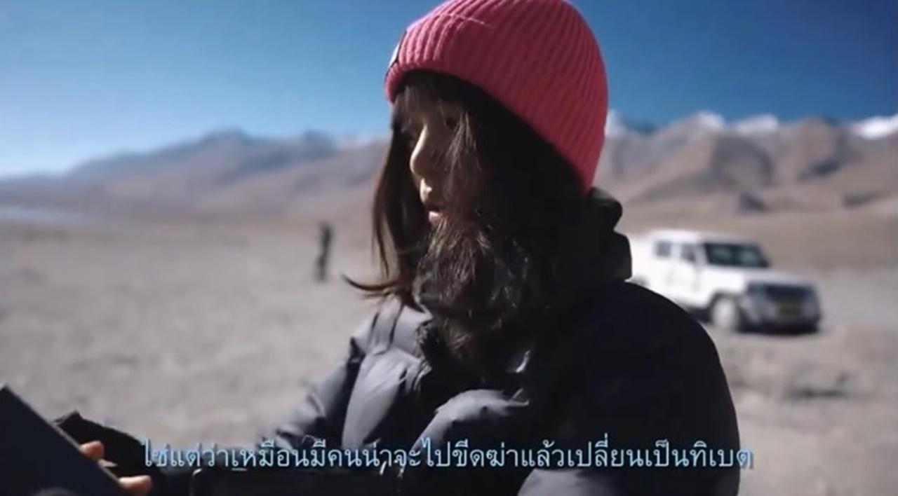 พลอย ได้พูดในคลิปว่า "นี่คือความน่าสนใจ จริงๆ มันเขียน China แต่ไม่รู้ใครไปขีดฆ่าแล้วเขียนคำว่า Tibet เข้าไป" เบนซ์ กล่าวว่า "อาจจะเป็นของจีนมาก่อน แล้วคนทิเบตรู้สึกว่าของฉันรึเปล่า เพราะถ้าดูตามป้ายก็พิมพ์มาอย่างชัดเจนเนอะ" จากนั้น พลอย จึงทำการค้นหาใน Google Map ว่าบริเวณตรงนั้นเป็นของใคร และบอกว่า "ถ้าในกูเกิลแมปมันก็จะเขียนว่า China เว้ย"