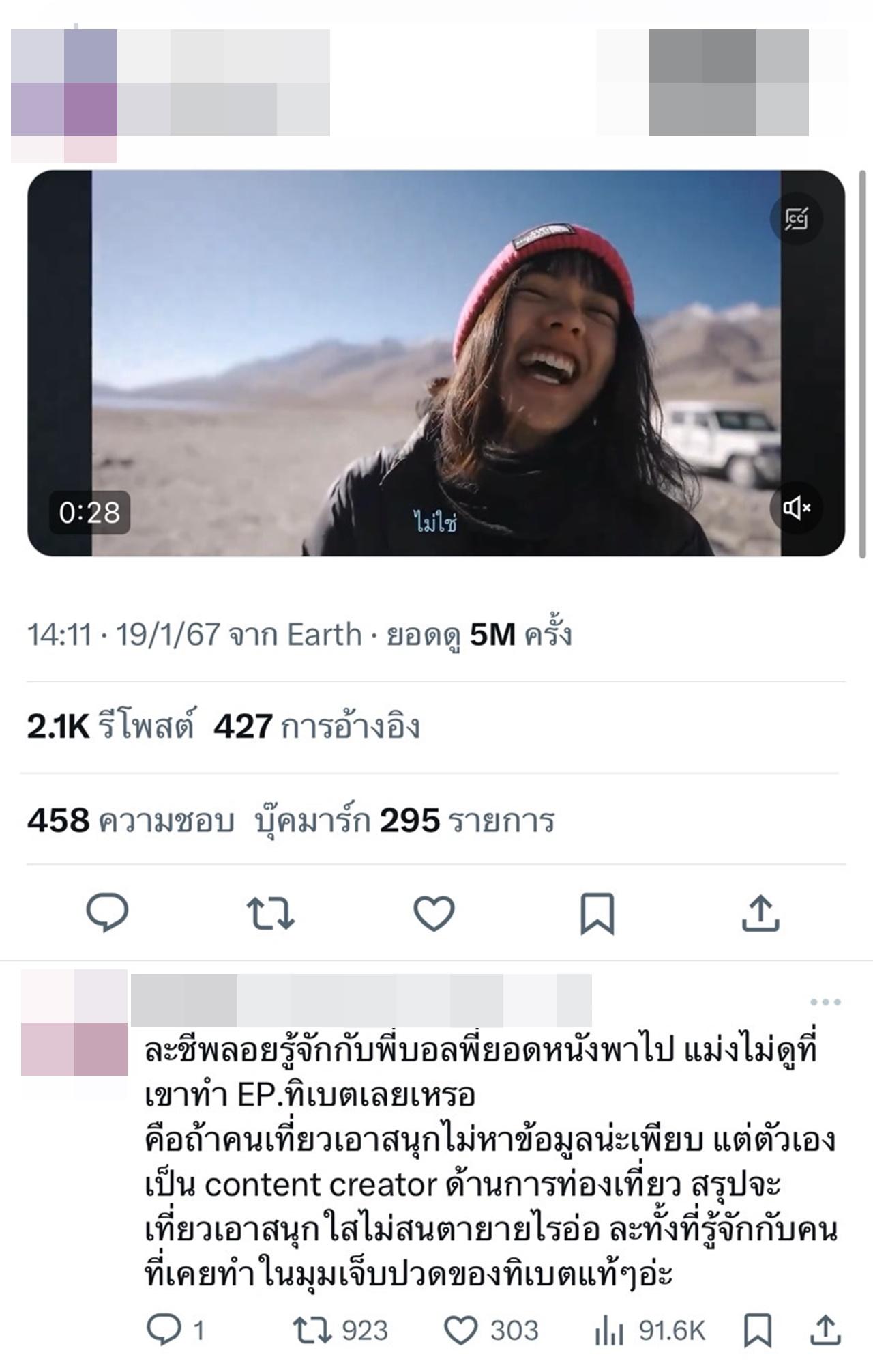 และดูเหมือนเรื่องนี้จะไม่จบง่ายๆ เมื่อมีชาวเน็ตได้ตั้งข้อสงสัย และโพสต์ข้อความผ่านทาง X บอกว่า "เท่าที่ดูมา เค้าดูตามการเมืองน้อยจริงแหละ ไม่ใช่แค่ในประเทศ แต่การเมืองต่างประเทศด้วย อย่างอีพีเลห์ก็มีพูดเรื่องเขตแดนทิเบต โดยที่ดูยังไม่เข้าใจปัญหาเรื่องจีนกับทิเบตเลย"