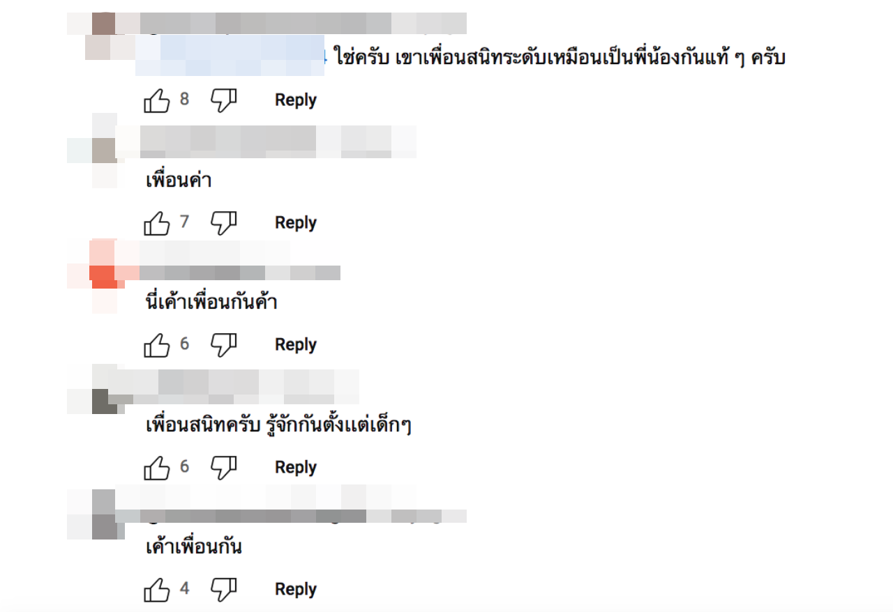 แต่ก็มีชาวเน็ตเข้ามาคอมเมนต์แสดงความคิดเห็นอีกด้านหนึ่งว่า “เพราะรู้จักกันมานานด้วยค่ะ พี่ญ่าแกก็คงสนิท 2 คนนี้ในระดับนึง, เขาก็เพื่อนกันหมดเปล่า, ใช่ครับ เขาเพื่อนสนิทระดับเหมือนเป็นพี่น้องกันแท้ๆ ครับ, เพื่อนค่า, นี่เค้าเพื่อนกันค้า, เพื่อนสนิทครับ รู้จักกันตั้งแต่เด็กๆ, เค้าเพื่อนกัน”