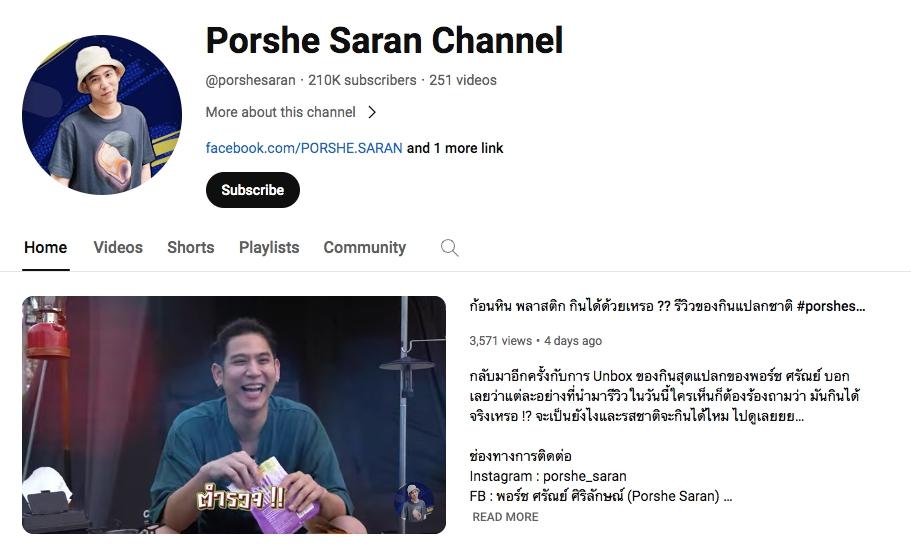 พอร์ช ศรัณย์ เข้าสู่วงการบันเทิงโดยการถ่ายแบบลงนิตยสาร ระหว่างนั้นเป็นนักดนตรีเล่นตามร้านอาหารที่จังหวัดจันทบุรี จนมาได้เล่นโฆษณา และได้แสดงภาพยนตร์เรื่องแรกคือ เการักที่เกาหลี ซอร์รี ซารังเฮโย หลังจากนั้นเซ็นสัญญาเป็นนักแสดงช่อง 7 ทำให้พอร์ชมีผลงานละคร โดยผลงานที่สร้างชื่อให้คือละครเรื่อง มนต์รักแม่น้ำมูล โดยปัจจุบันพอร์ชได้หมดสัญญากับช่อง 7 และผันตัวเป็นนักแสดงอิสระ และยังเป็นยูทูบเบอร์อีกด้วย.