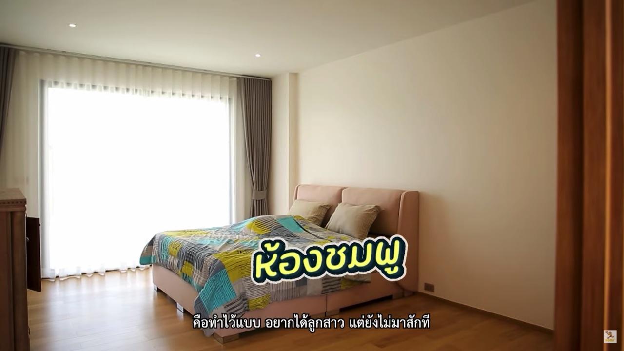 ส่วนชั้นบนจะเป็นห้องนอน ทำห้องนอนสีชมพูไว้รอลูกสาว ส่วนห้องสีฟ้าเป็นห้องของน้องโพธิ์ที่เลือกเฟอร์นิเจอร์เอง ทำไว้ถึงอนาคตตอนลูกโตเลย
