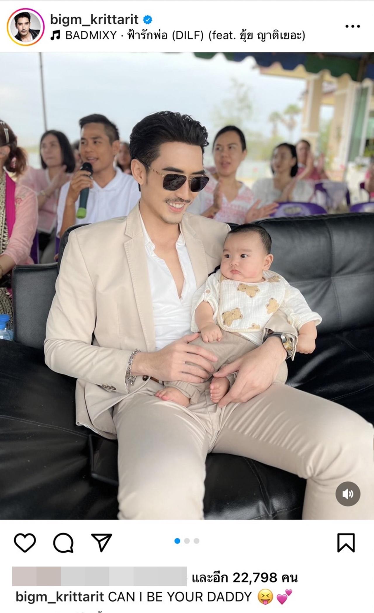ทำเอาแฟนคลับถึงกับตกใจ หลังเห็นภาพของพระเอกมาดเข้มอย่าง บิ๊กเอ็ม กฤตฤทธิ์ บุตรพรม อุ้มเด็กน้อยหน้าตาจิ้มลิ้มสุดน่ารัก พร้อมเขียนแคปชั่นว่า "CAN I BE YOUR DADDY"