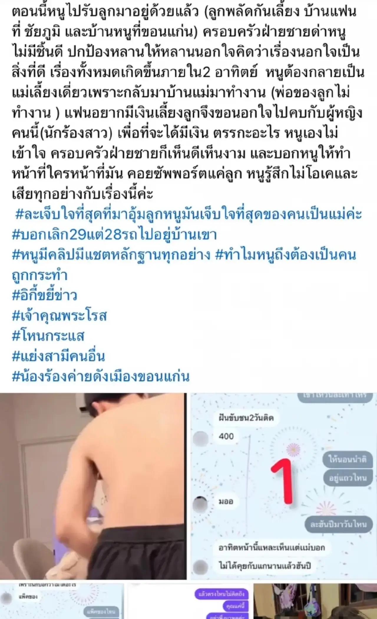 ทำเอาแฟนๆ ถึงกับอยากรู้กันเลยทีเดียว เมื่อจู่ๆ มีสาวแม่ลูกอ่อนได้ออกมาโพสต์ข้อความแฉพฤติกรรมของนักร้องลูกทุ่งสาวรายหนึ่งกับสามีของตัวเองผ่านทางเฟซบุ๊ก โดยหญิงสาวรายนี้ได้โพสต์ข้อความอ้างว่า