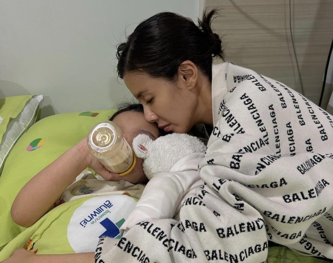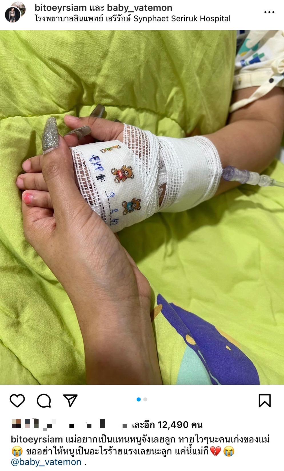 เรียกว่าหัวอกคนเป็นแม่ใจแทบขาดเมื่อเห็นลูกสาวไม่สบาย พร้อมเขียนเเคปชั่นว่า "แม่อยากเป็นแทนหนูจังเลยลูก หายไวๆนะคนเก่งของแม่ ขออย่าให้หนูเป็นอะไรร้ายแรงเลยนะลูก แค่นี้แม่ก็ @baby_vatemon"