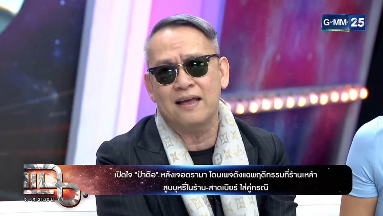 กับกรณีที่ถูกกล่าวอ้างว่าเทเบียร์ลงบนโต๊ะนั้น ป้าตือ บอกว่า "คว่ำแก้วค่ะ เพราะว่าน้องเขาพูดจริงว่า ถ้าอายุ 61 แล้วเป็นแบบป้าเขาไม่อยากจะมีชีวิต เราก็บอกว่างั้นไม่เอาแล้ว ไม่อยากคุยแล้ว แล้วก็คว่ำแก้ว เทใส่โต๊ะ เดินออกจากโต๊ะ งานนี้ก็ต้องขอโทษที่ความสวยเป็นเหตุ ไปขอบุหรี่ผู้ชาย"
