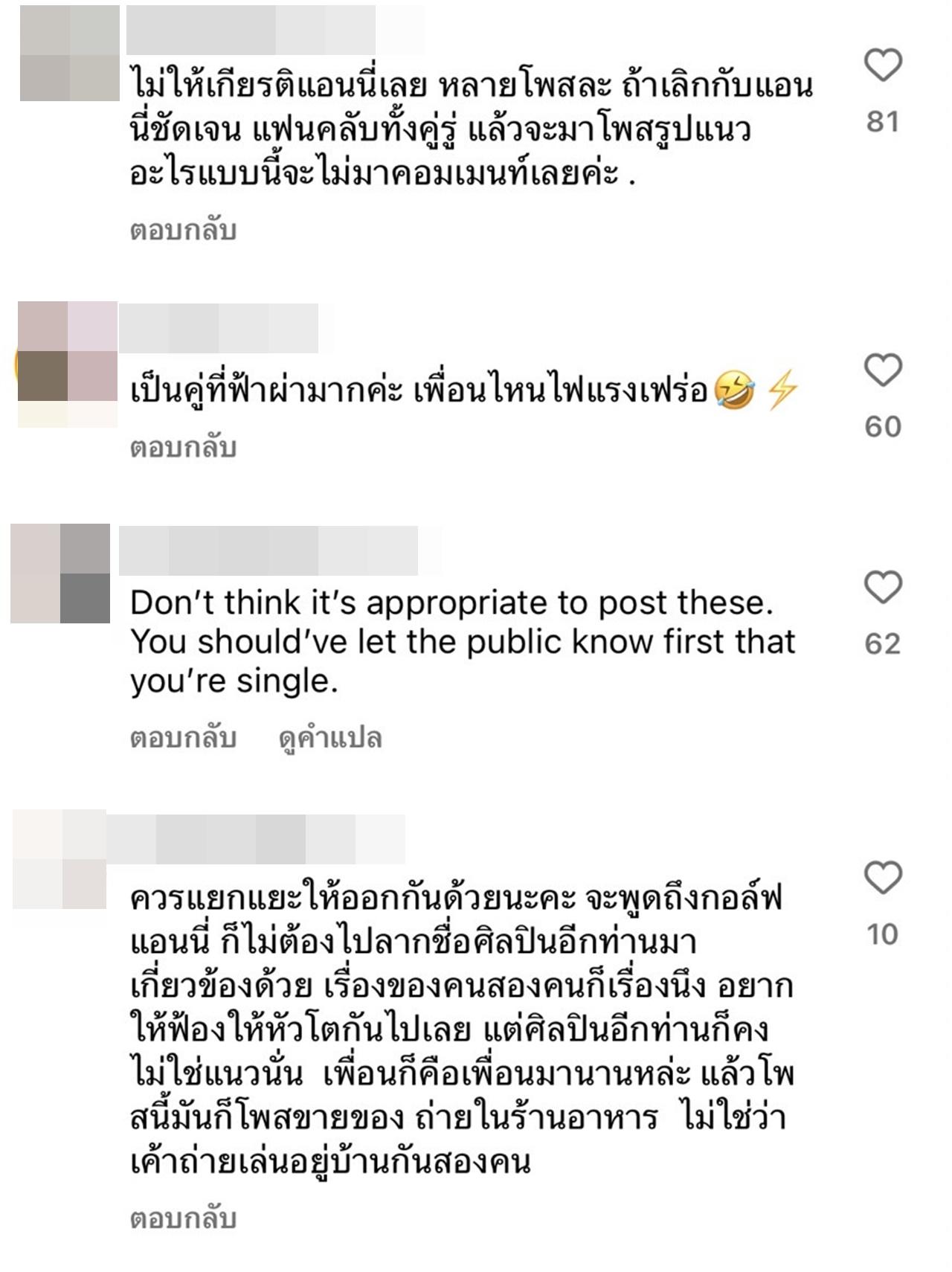 - ไม่ให้เกียรติแอนนี่เลย หลายโพสละ ถ้าเลิกกับแอนนี่ชัดเจน แฟนคลับทั้งคู่รู้ แล้วจะมาโพสรูปแนวอะไรแบบนี้จะไม่มาคอมเมนต์เลยค่ะ