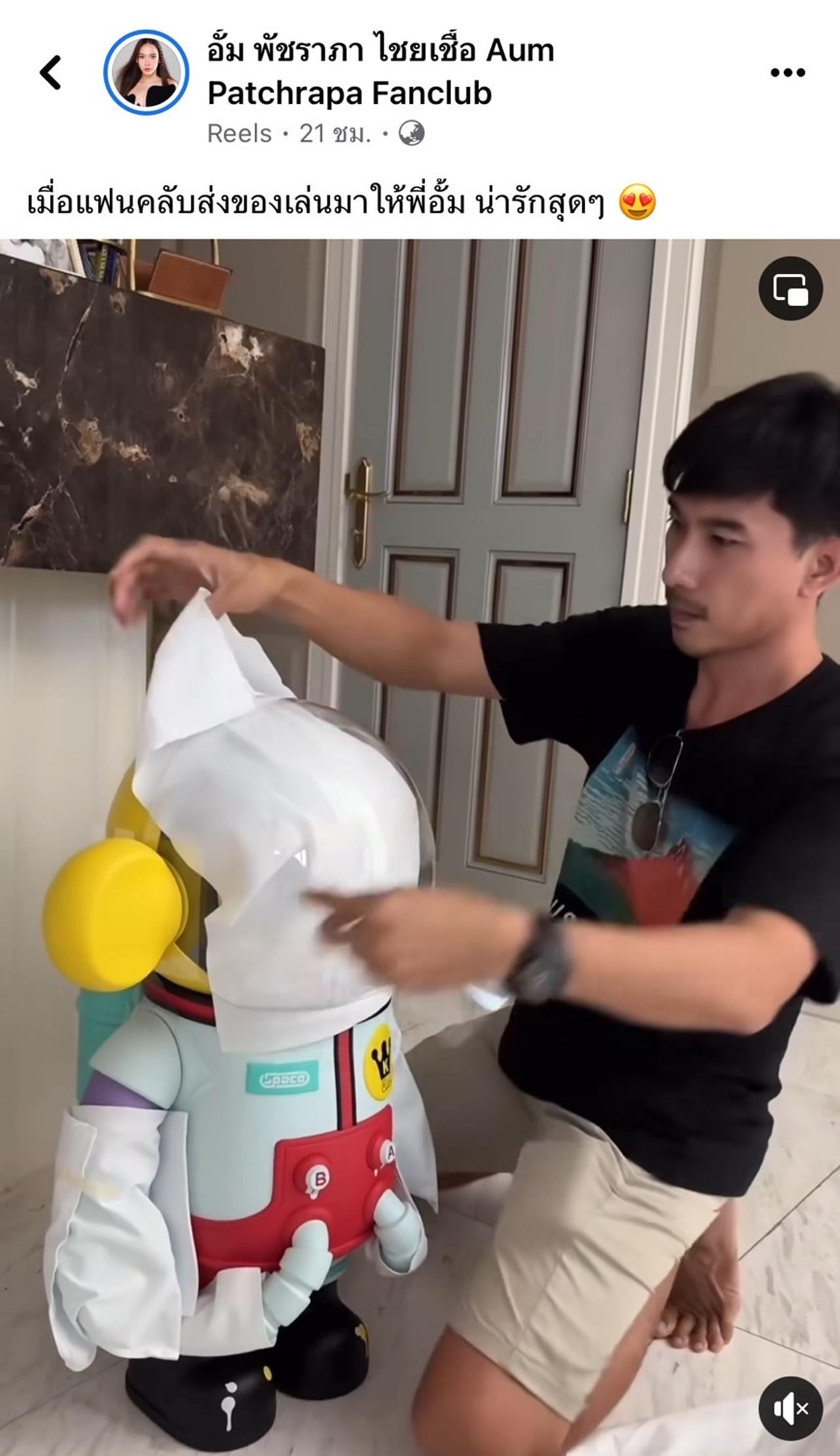 โดยในแฟนเพจ อั้ม พัชราภา ไชยเชื้อ Aum Patchrapa Fanclub ได้ลงคลิปขณะกำลังแกะห่อของขวัญ แต่งานนี้ทำเอาหลายคนต่างโฟกัสที่หนุ่มหล่อหน้าตาดี ที่กำลังช่วยอั้มแกะของขวัญ พร้อมกับแห่ถามเข้ามากันยกใหญ่เลยว่า หนุ่มคนนี้เป็นใคร ช่วยชี้พิกัดที อาทิ คนแกะหล่อมากค่าแม่, น่ารักมากค่ะ(คนแกะนะคะ), บอกบุญ IG คนแกะหน่อยค่า ได้บุญได้กุศลยิ่งกว่าสร้างโบสถ์ สร้างวิหารเจ้าค่ะ เป็นต้น