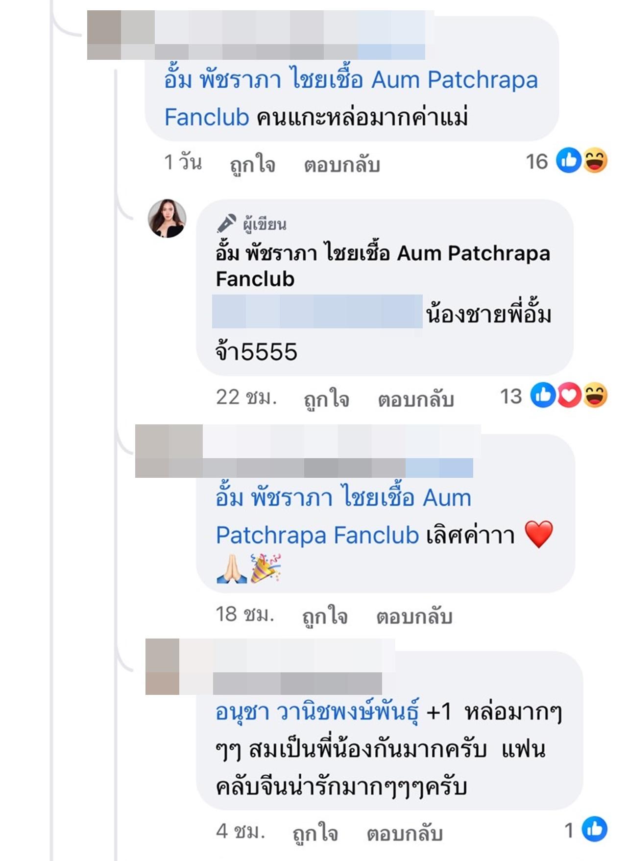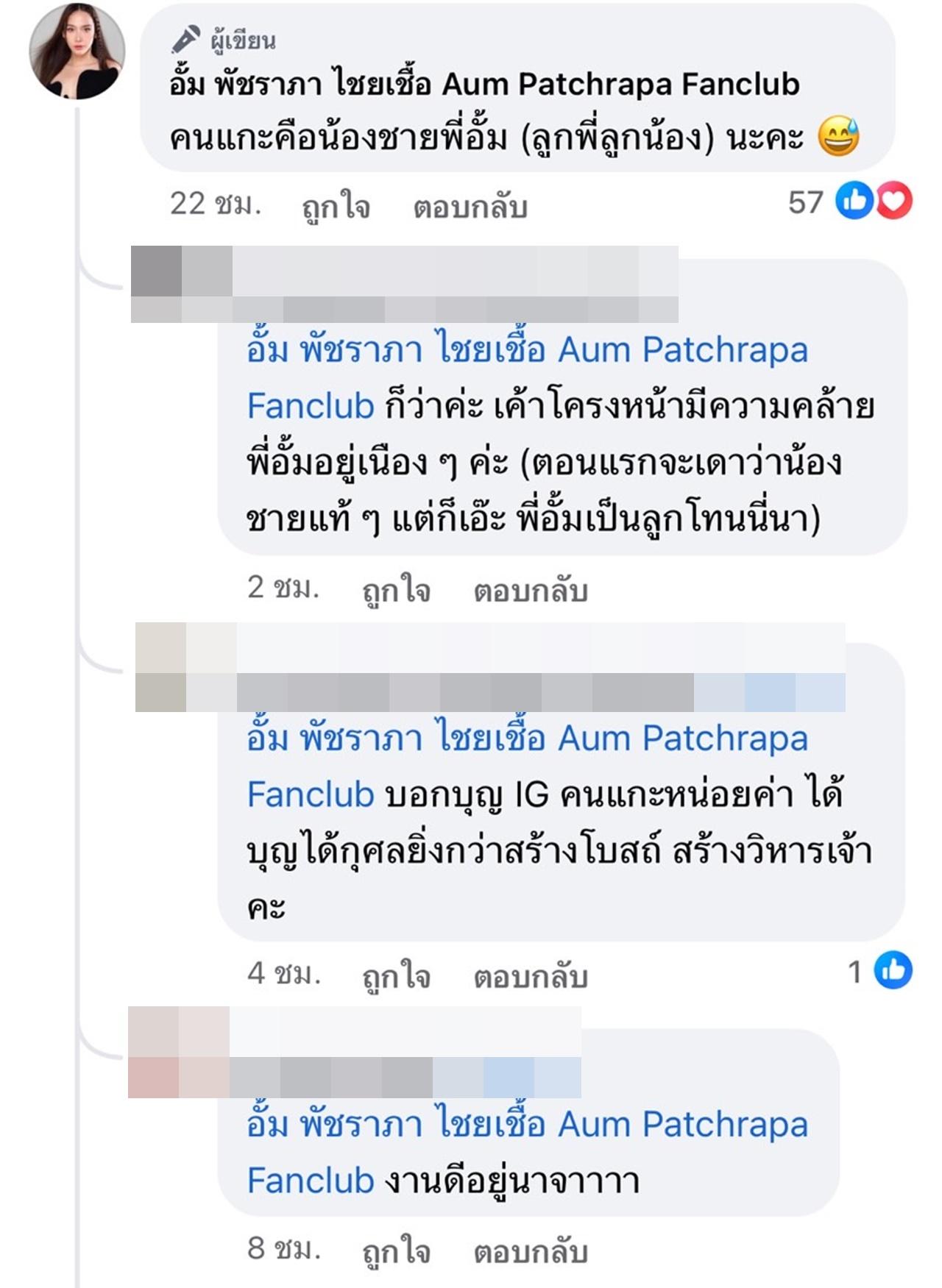 ซึ่งแอดมินของแฟนเพจก็ได้เข้ามาตอบกลับว่า "คนแกะคือน้องชายพี่อั้ม (ลูกพี่ลูกน้อง) นะคะ".