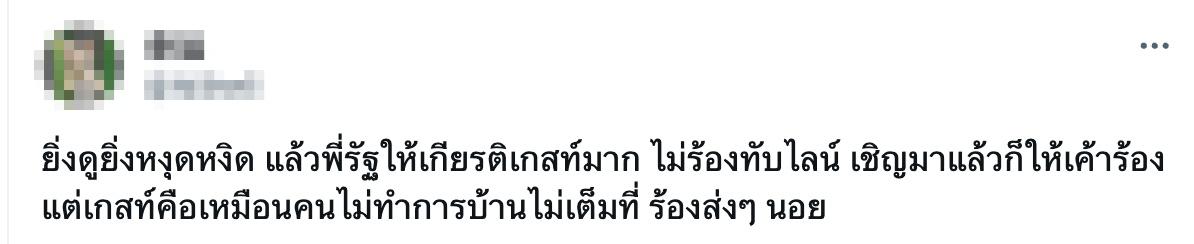 ก่อนจะมีชาวเน็ตไปรีคลิปดังกล่าว พร้อมกับแสดงความคิดเห็นในเรื่องนี้เอาไว้ว่า "ยิ่งดูยิ่งหงุดหงิด แล้วพี่รัฐให้เกียรติเกสท์มาก ไม่ร้องทับไลน์ เชิญมาแล้วก็ให้เค้าร้อง แต่เกสท์คือเหมือนคนไม่ทำการบ้านไม่เต็มที่ ร้องส่งๆ นอย"