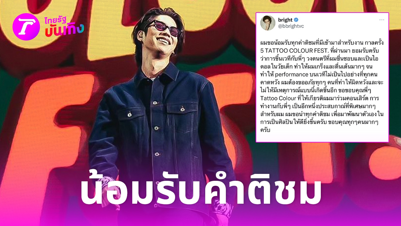 ล่าสุด นักแสดงหนุ่มก็ไม่ได้นิ่งเฉย ล่าสุด ไบร์ท วชิรวิชญ์ ก็ได้ออกมาโพสต์น้อมรับผิด และอธิบายถึงสาเหตุที่ทำให้เจ้าตัวทำให้แฟนๆ ที่ไปชมคอนเสิร์ตรู้สึกผิดหวัง ผ่านทางโซเชียล X ว่า