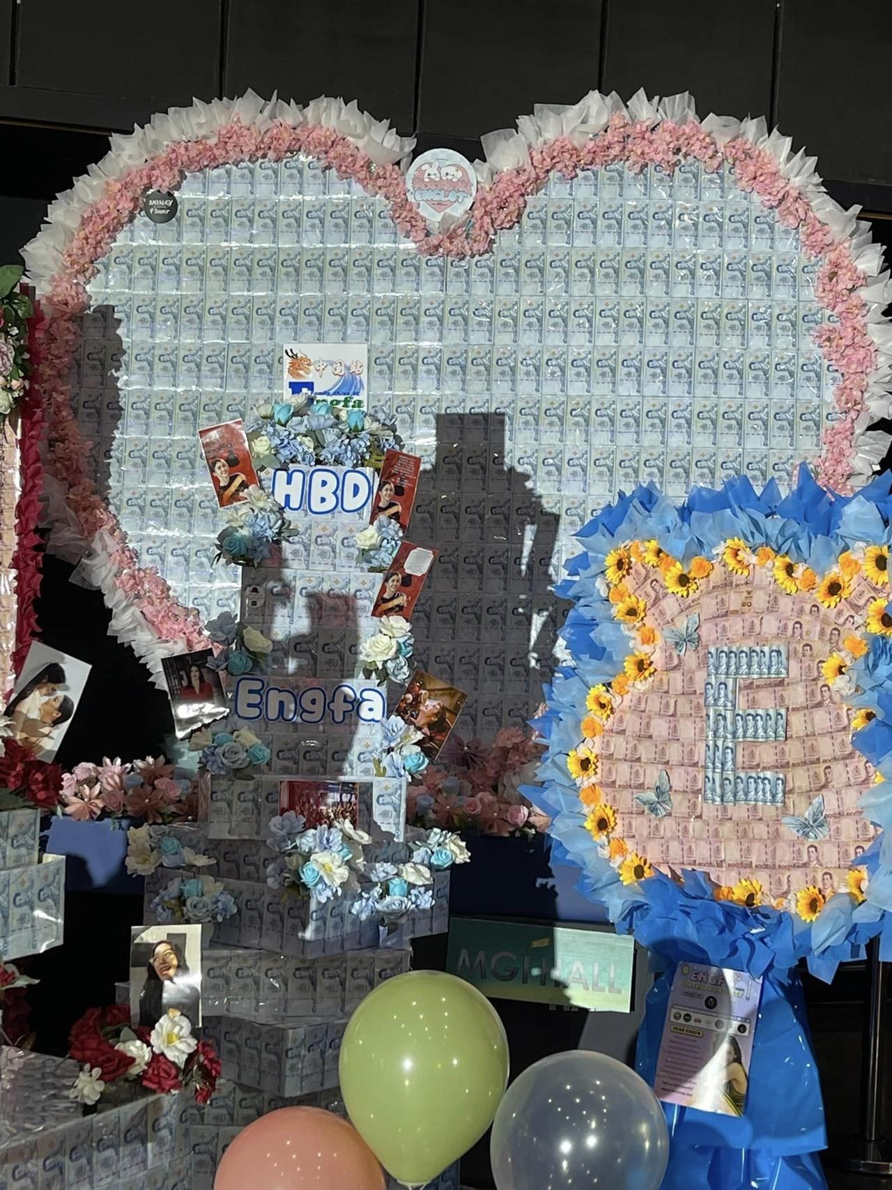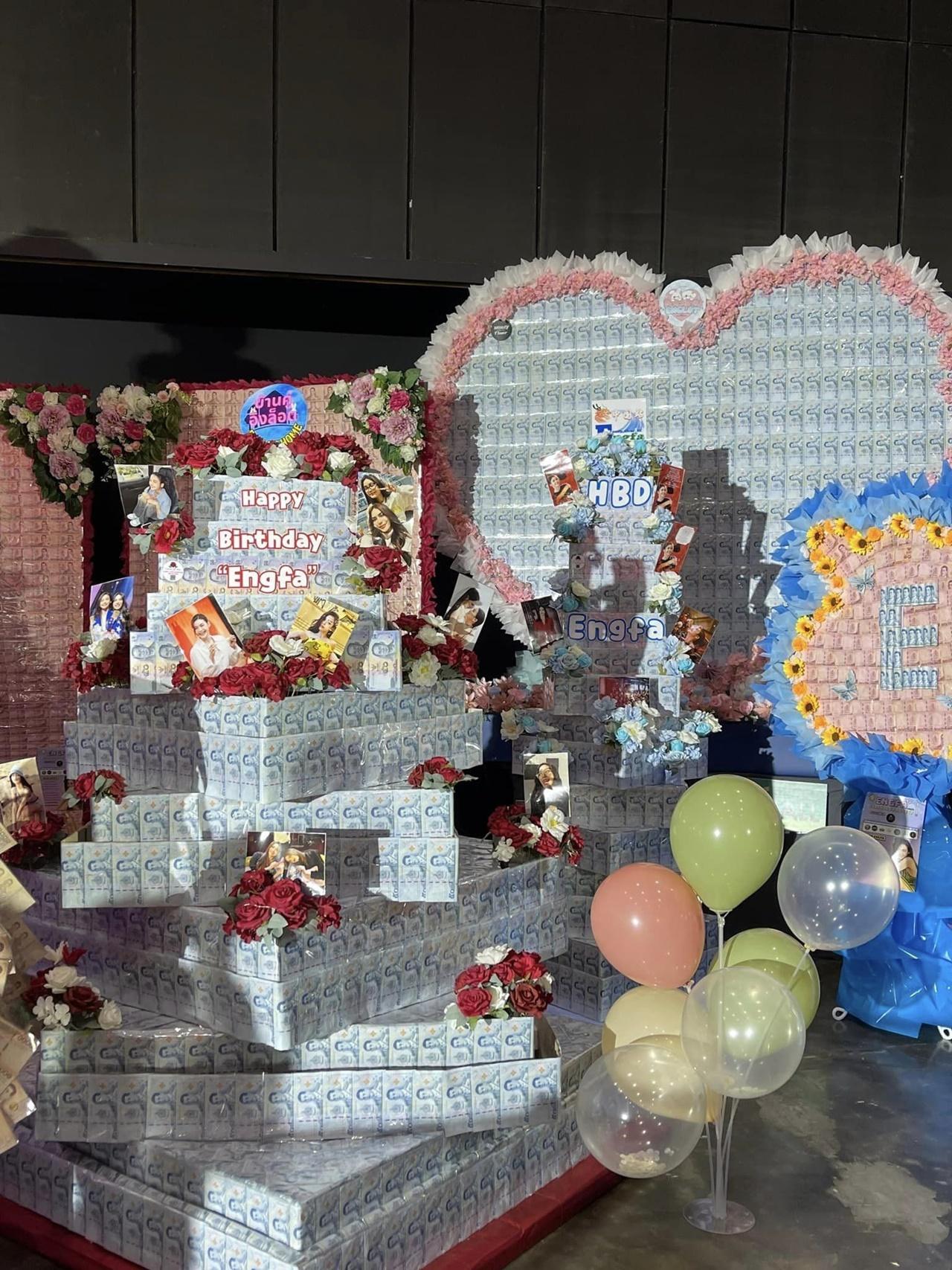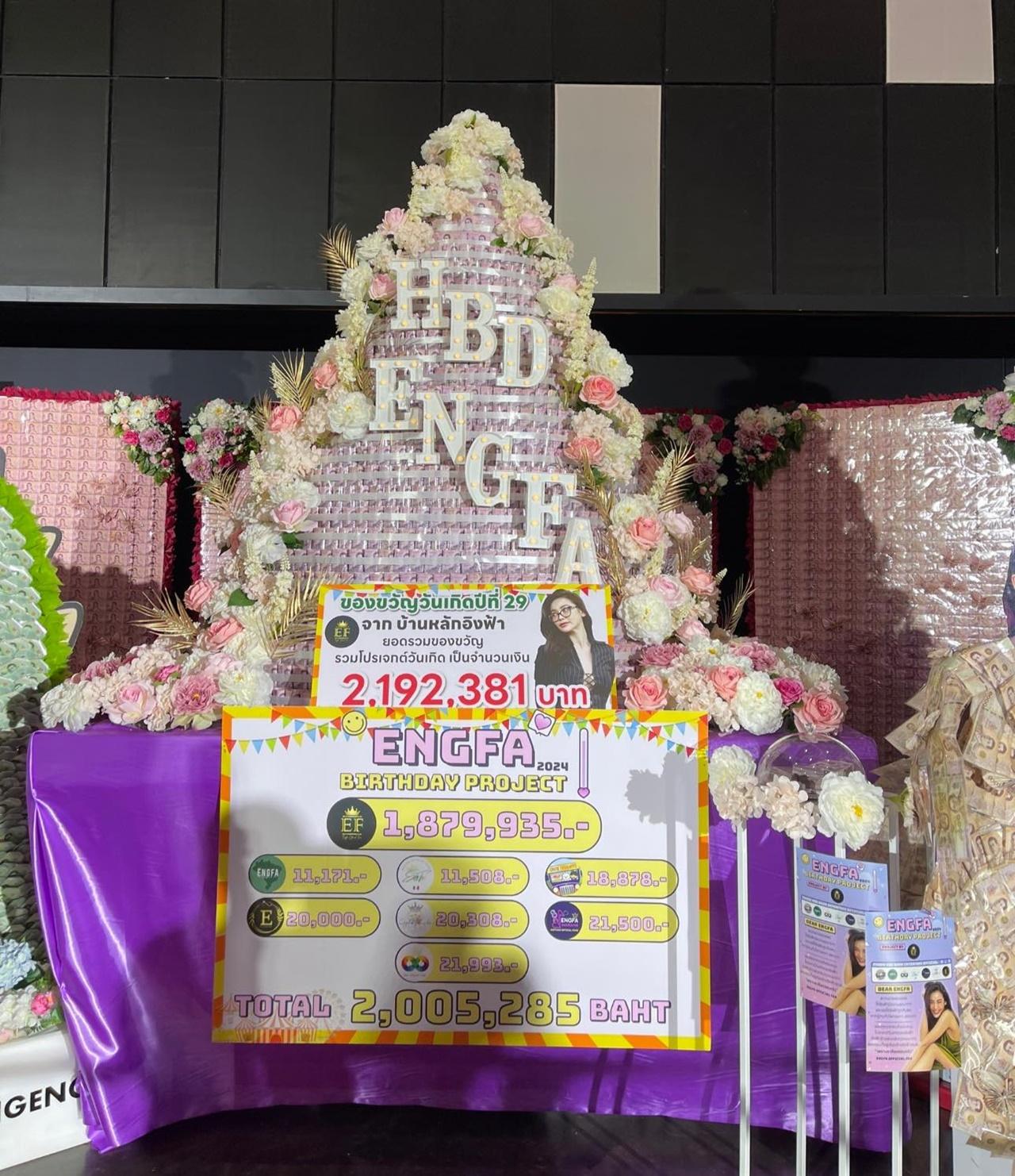 โดยมีแฟนคลับมาร่วมงานกันจำนวนมาก ซึ่งทุกคนต่างก็มีของขวัญมาให้กับพี่ฟ้า นางงามในดวงในอีกด้วย และ อิงฟ้า เองก็ได้โพสต์ภาพของขวัญวันเกิดที่แฟนคลับตั้งใจนำมาให้ มีทั้งช่อเงิน เค้กเงินก้อนโต พวงมาลัยเงินสดพวงใหญ่ ทุกอย่างเต็มไปด้วยเงิน ละลานตาอย่างมาก