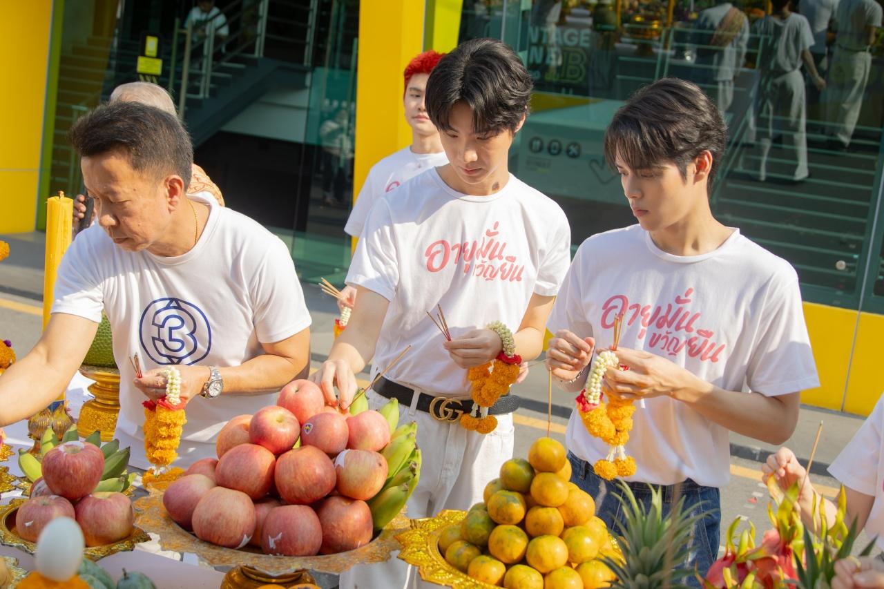 ผู้อำนวยการสร้าง คุณศิริลักษณ์ พรศิริพันธุ์ บริษัท ฟีลกู๊ด แบงค็อก จำกัด ร่วมด้วย คุณชาคริต ดิเรกวัฒนชัย รองกรรมการผู้อำนวยการ สำนักกิจการและสื่อสารองค์กร สถานีโทรทัศน์ไทยทีวีสีช่อง 3, คุณอธิชา ขวัญคง Project Coordinator WeTV, คุณปฏิพล นาคะประเสริฐกุล ผู้ช่วยผู้จัดการฝ่ายขาย บริษัท วีจีไอ จำกัด (มหาชน) และ คุณฟาติมา เลิศศิรบวรชัย Account Executve & Music licensing Coordinator คุณภานุเดช สุขกระจ่างกุล Marketing Communication Manager จาก What The Duck จัดพิธีบวงสรวงขอพรเพื่อความเป็นสิริมงคลให้กับซีรีส์ “อายุมั่นขวัญยืน” (1000 Years Old) ณ ลานพระพิฆเนศ หน้าศูนย์การค้ายูเนี่ยนมอลล์ งานนี้ แชมป์ วีรชิต ทองจิลา ผู้กำกับมากฝีมือที่เคยสร้างปรากฏการณ์ตำนานความจิ้น และฝีมือการกำกับในซีรีส์ชื่อดังอย่าง คั่นกู, คุณแม่วัยใส, พี่จะตีนะเนย ฯลฯ ยกทัพนักแสดงนำ อาทิ เชน ณัชพล ชีวะปัญญาโรจน์, โอปอล กฤษภาฑร ชวัลวัชรากร, บอส ณัฐกิตติ์ สังวรกิจฤชัย, บอย YourMOOD ฯลฯ มาร่วมพิธีอย่างพร้อมเพรียง โดยมีเหล่าแฟนคลับมาร่วมให้กำลังใจ