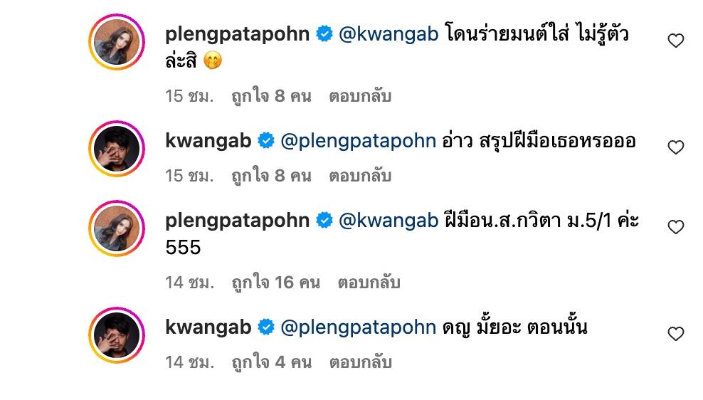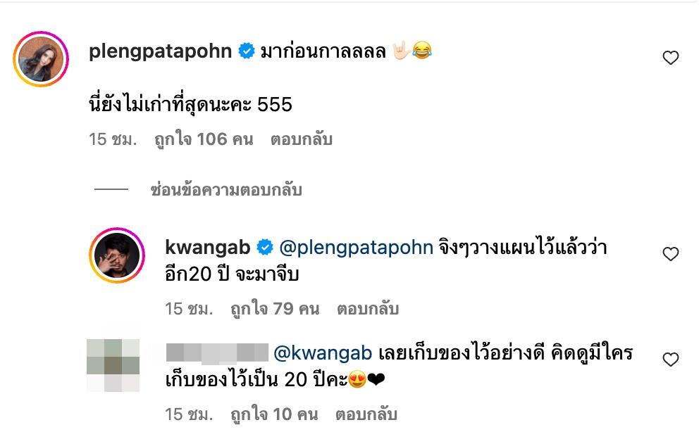 หลังจากที่กวางโพสต์รูปดังกล่าวไป สาวเพลงก็มาคอมเมนต์ว่า "มาก่อนกาลลลล นี่ยังไม่เก่าที่สุดนะคะ 555" งานนี้ฝ่ายชายก็ไม่รอช้า มาคอมเมนต์ตอบกลับว่า "จริงๆ วางแผนไว้แล้วว่า อีก 20 ปี จะมาจีบ" สาวเพลงก็ตอบกลับว่า "โดนร่ายมนตร์ใส่ ไม่รู้ตัวล่ะสิ" ซึ่งทั้งคู่ก็คอมเมนต์แซวกันกลับไปมา เรียกว่าทำเอาไอจีของหนุ่มกวางหวานจนมดขึ้นไปหมดแล้ว