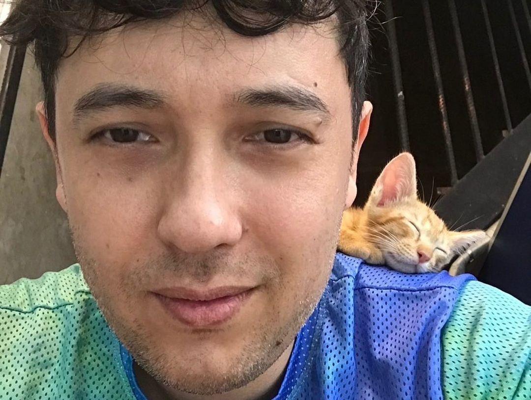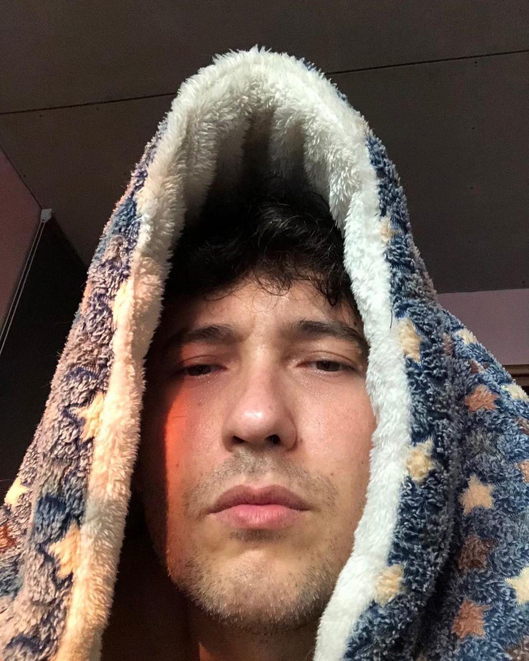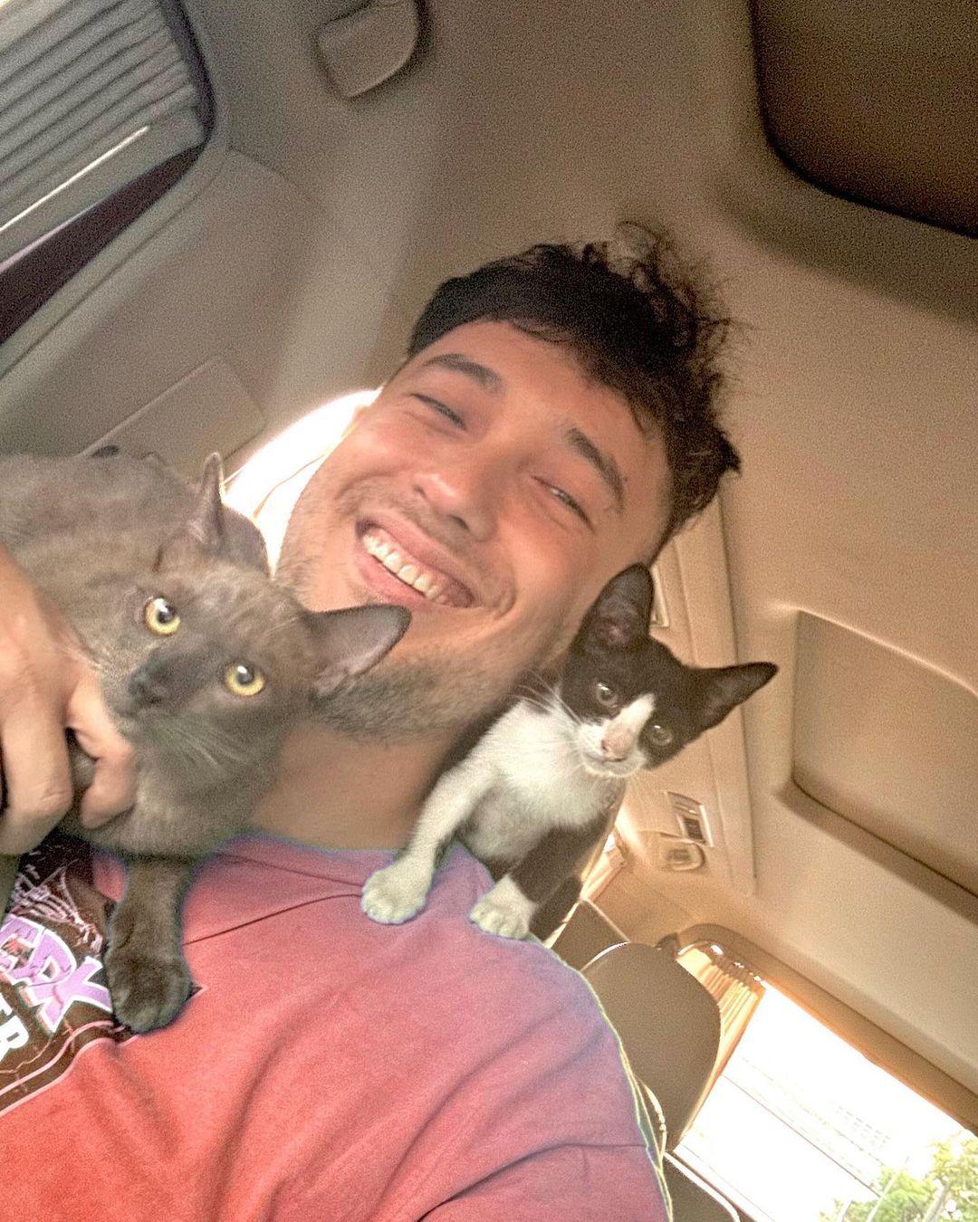 และล่าสุดพระเอกหนุ่มได้โพสต์ภาพใบหน้าของตัวเอง พร้อมเขียนข้อความว่า "บางทีก็อยากตื่นสาย แต่ทำไม่ได้เพราะแมวมาปลุก (อากาศหนาวเลยต้องซุกที่นอนแมว) #เกี่ยวกันมั้ย"