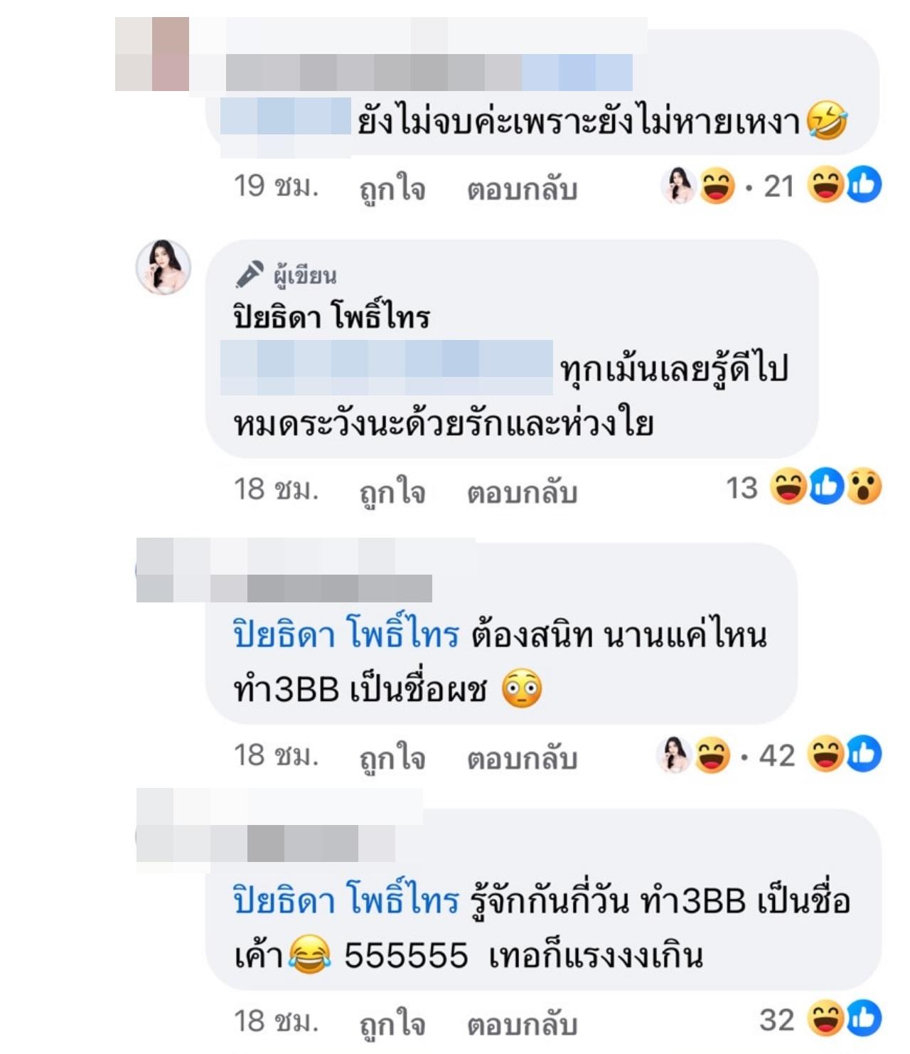 ทางด้าน อ๋อมแอ๋ม ก็ได้แชร์โพสต์คำคมพร้อมเขียนข้อความว่า "ความรู้สึกตัวเองต้องมาก่อน" ด้านชาวเน็ตก็ได้เข้ามาคอมเมนต์ถาม ซึ่ง อ๋อมแอ๋ม ก็ตอบว่า "จบจริงค่ะ และที่ไปเจอน้องวันที่13 คือบอกน้องไปเปลี่ยนชื่อออก (ทำ3BB) น้องก็โอเครมาเจอกัน ทำธุระเสร็จแยกย้าย ไปถามน้องนะเพราะหนูบอกไม่เอาคือไม่เอา เจอ13วันเดียว ตอบความจริงใครไม่ชื่อก็ไม่ต้องเชื่อ เพราะหนูจบแล้วใครจะขุดมาพูดให้เรื่องแดงอีกก็ส่วนของเค้าใครไม่จบแต่หนูจบ".
